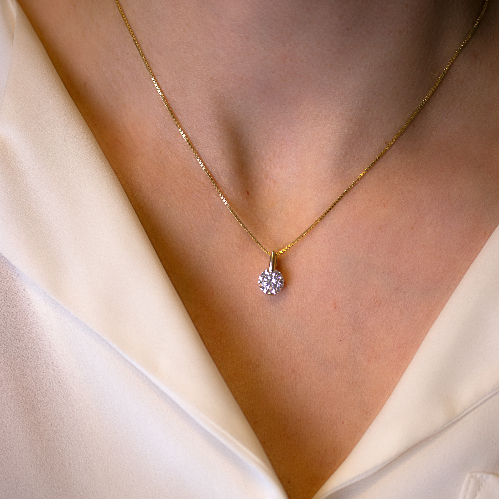Gør et subtilt og elegant statement med vores Ally Solitaire vedhæng i 8 karat guld. Den klare zirkonia sten, indfattet i et smukt vedhæng, tilføjer et strejf af glans til enhver lejlighed. Perfekt som en tidløs gave eller som en luksuriøs tilføjelse til din egen smykkesamling.