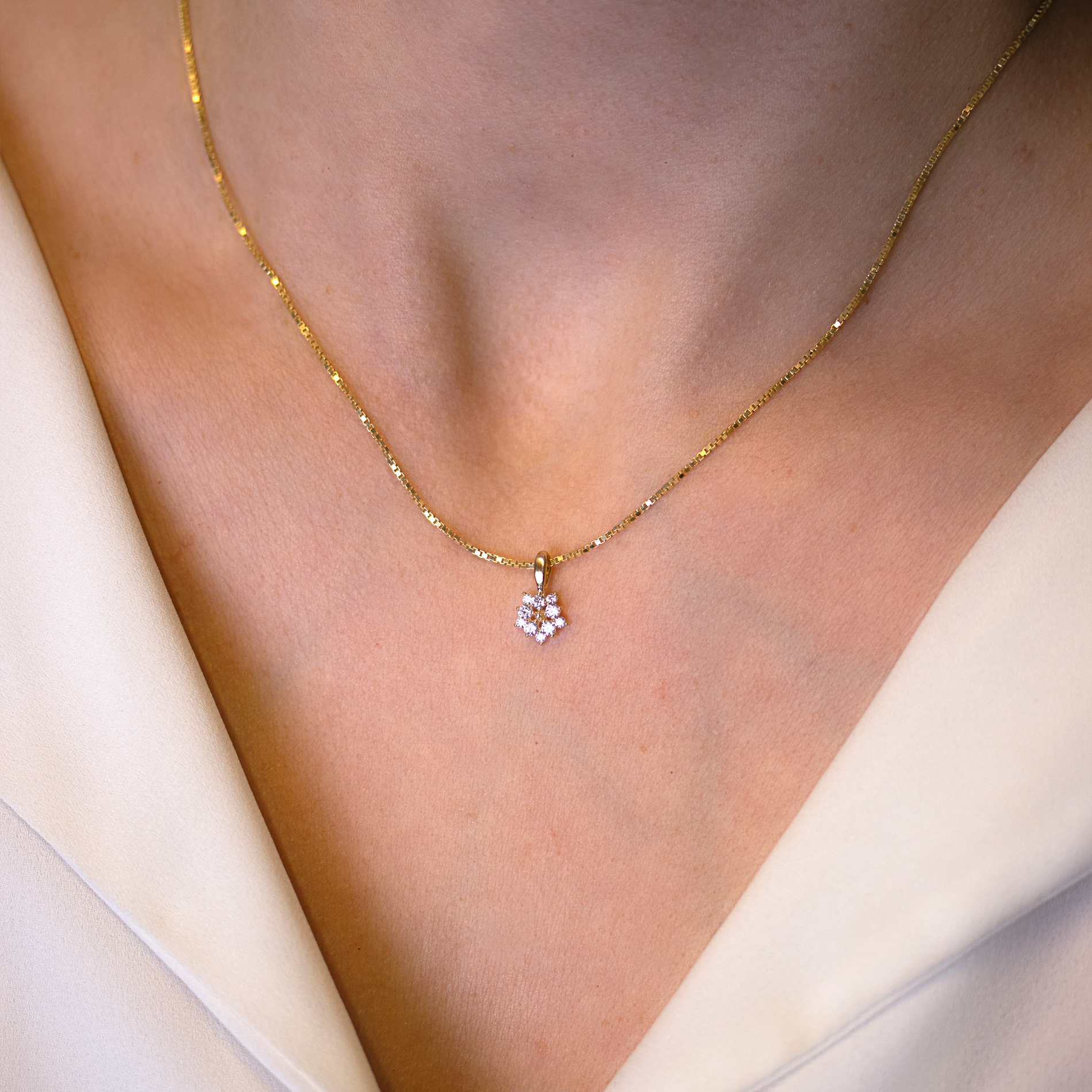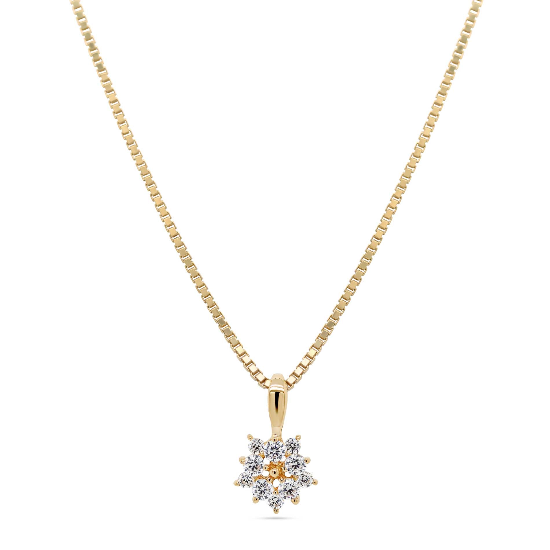 Altea Vedhænget i 14 karat guld er et elegant og stjernespækket smykke, hvor klare zirkonia sten er sat i et smukt stjernedesign. Dette vedhæng fanger lyset fra hver vinkel og skaber en funklende effekt, der symboliserer både lys og håb. Et perfekt valg til at tilføje et strejf af stjerneskær til din smykkesamling og en fantastisk gave til enhver, der elsker tidløse og glamourøse designs. Vedhænget leveres med en forgyldt sølvkæde.