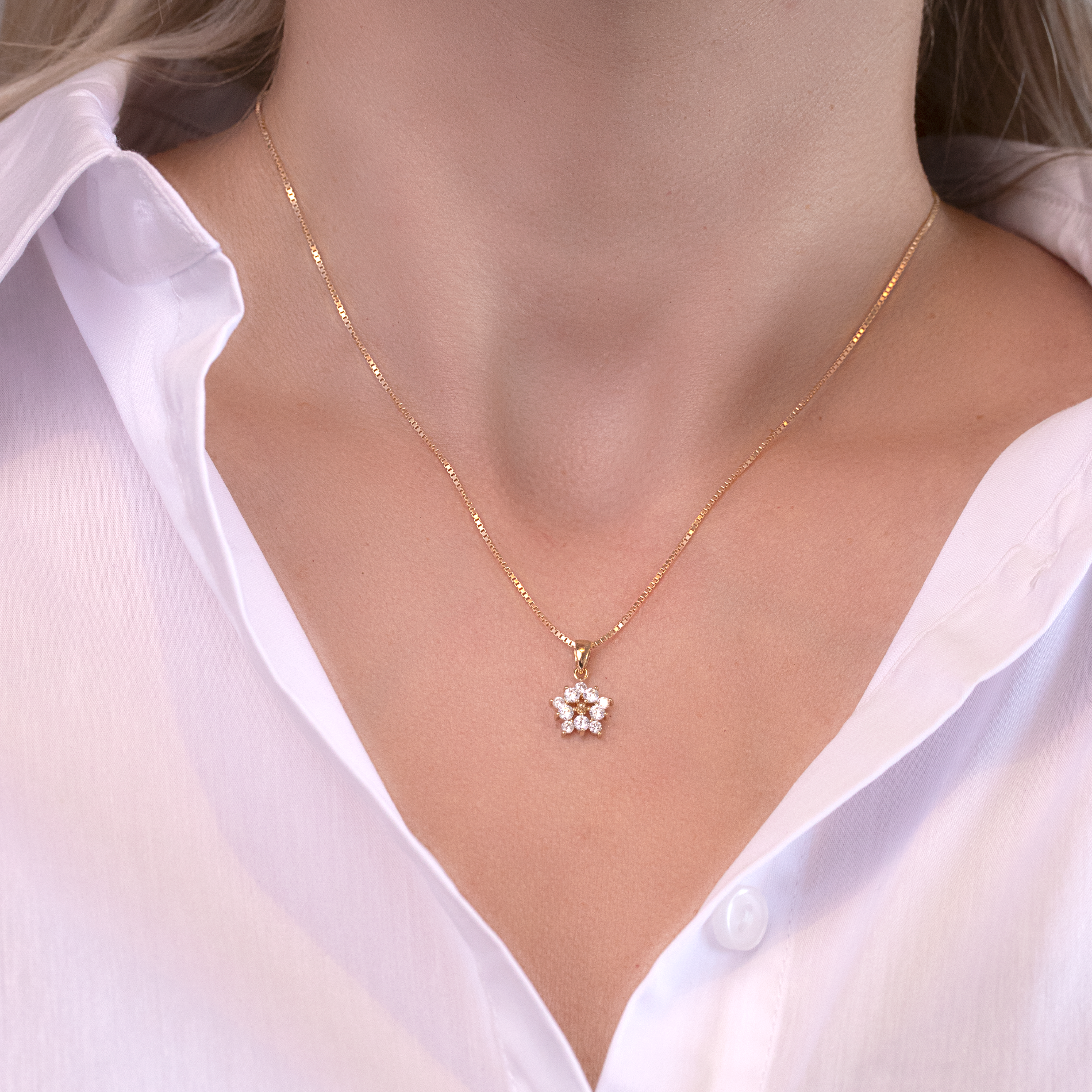 Bring et strejf af forår ind i din stil med vores Ava halskæde i forgyldt sølv. Det smukt zirkoniabesatte blomstervedhæng tilføjer en subtil elegance til ethvert look. Perfekt som en gave eller som en personlig forkælelse.
