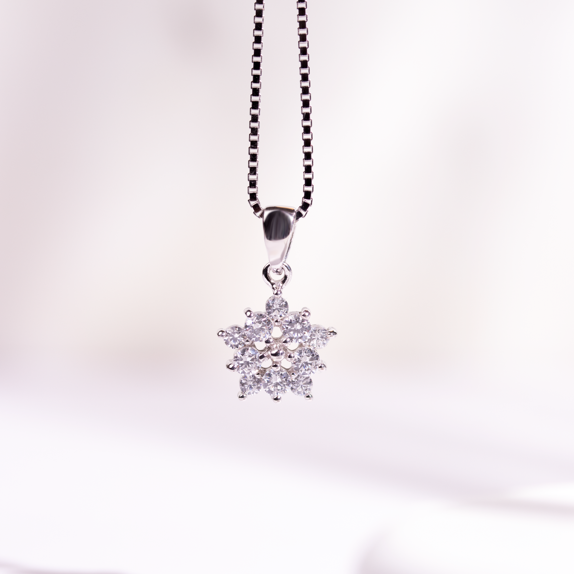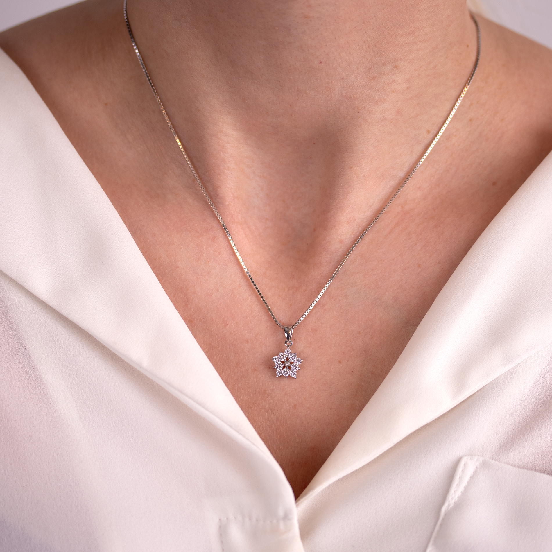 Bring et strejf af forår ind i din stil med vores Ava halskæde i sølv. Det smukt zirkoniabesatte blomstervedhæng tilføjer en subtil elegance til ethvert look. Perfekt som en gave eller som en personlig forkælelse.