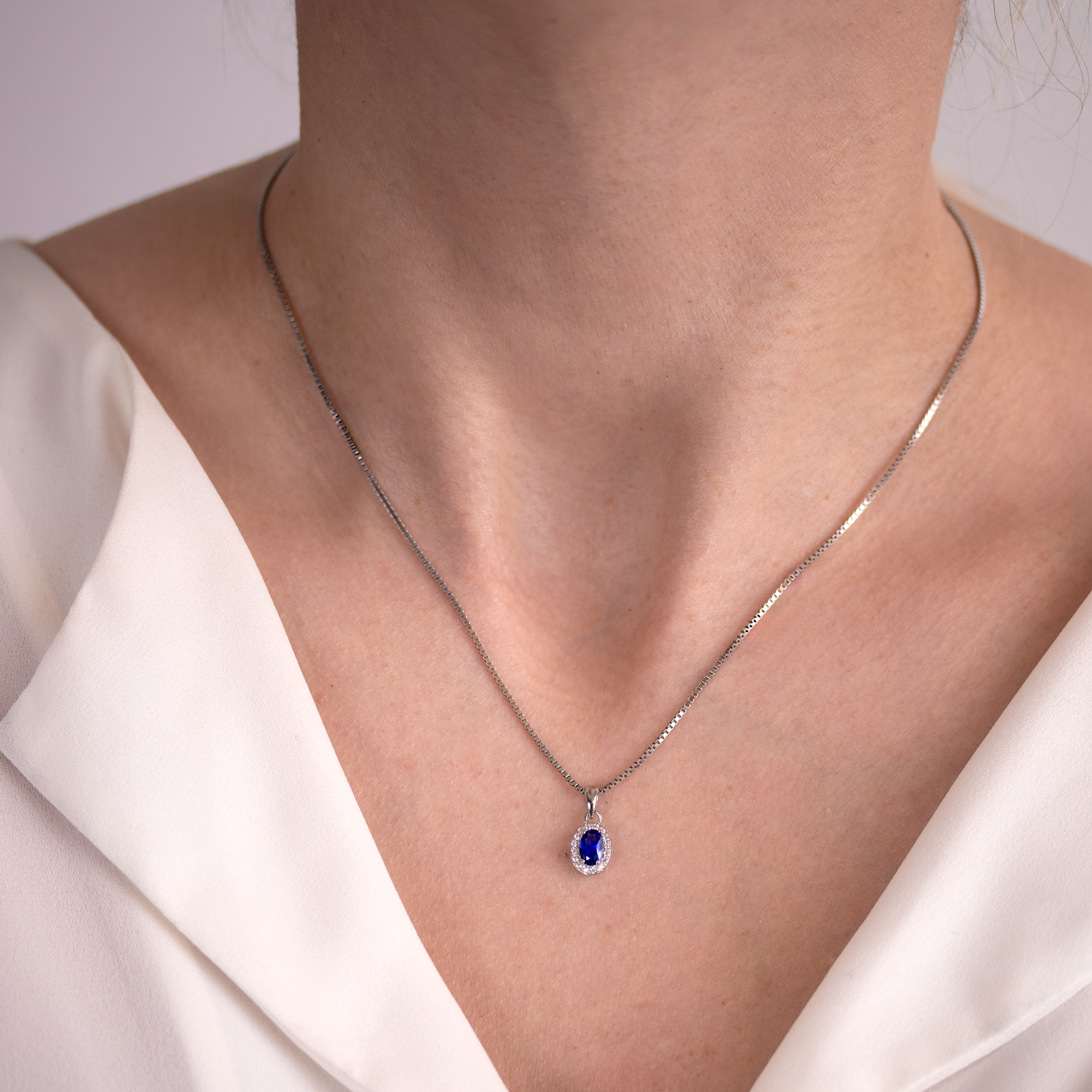 Indfør et strejf af kongelig elegance med vores Elina roset halskæde. En prægtigt safirblåt zirkonia sten, omgivet af gnistrende hvide zirkonia sten, skaber et imponerende smykke, der fanger opmærksomheden. Giv din stil et regalt løft med denne unikke og smukke halskæde.