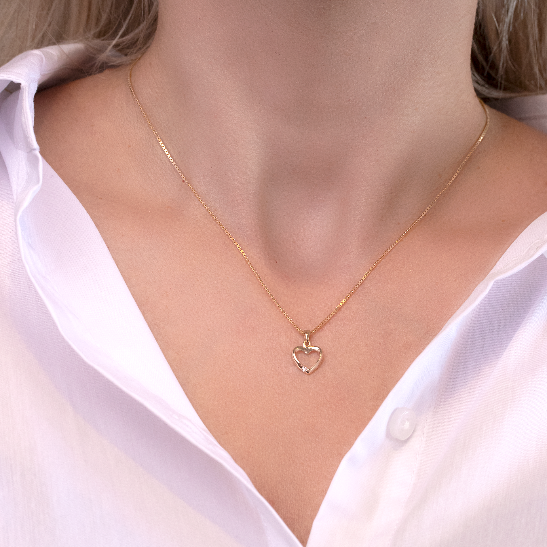 Vores åbne hjertevedhæng i 14 karat guld med en funklende diamant, er en sublim udforskning af en klassisk designæstetik. Den fine balance mellem det åbne rum og det gyldne metal skaber et tidløst smykke, der symboliserer kærlighed og elegance. Et perfekt valg til at fejre særlige øjeblikke eller som en gave til en elsket.
