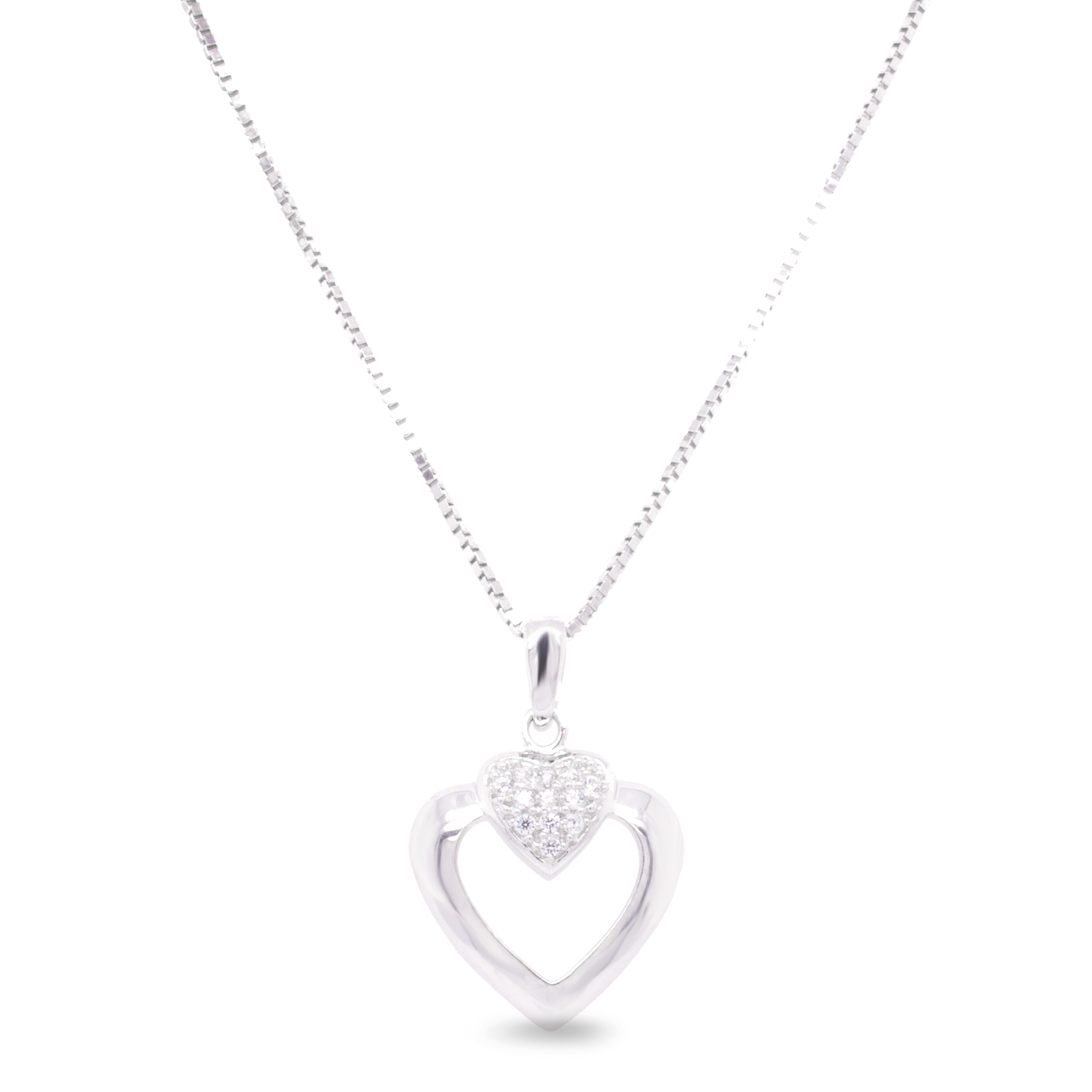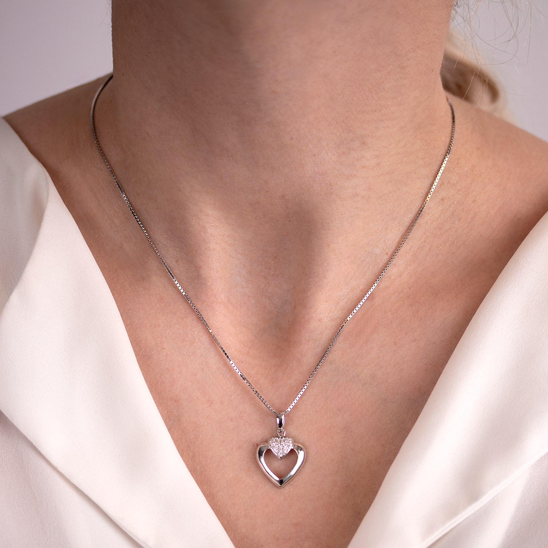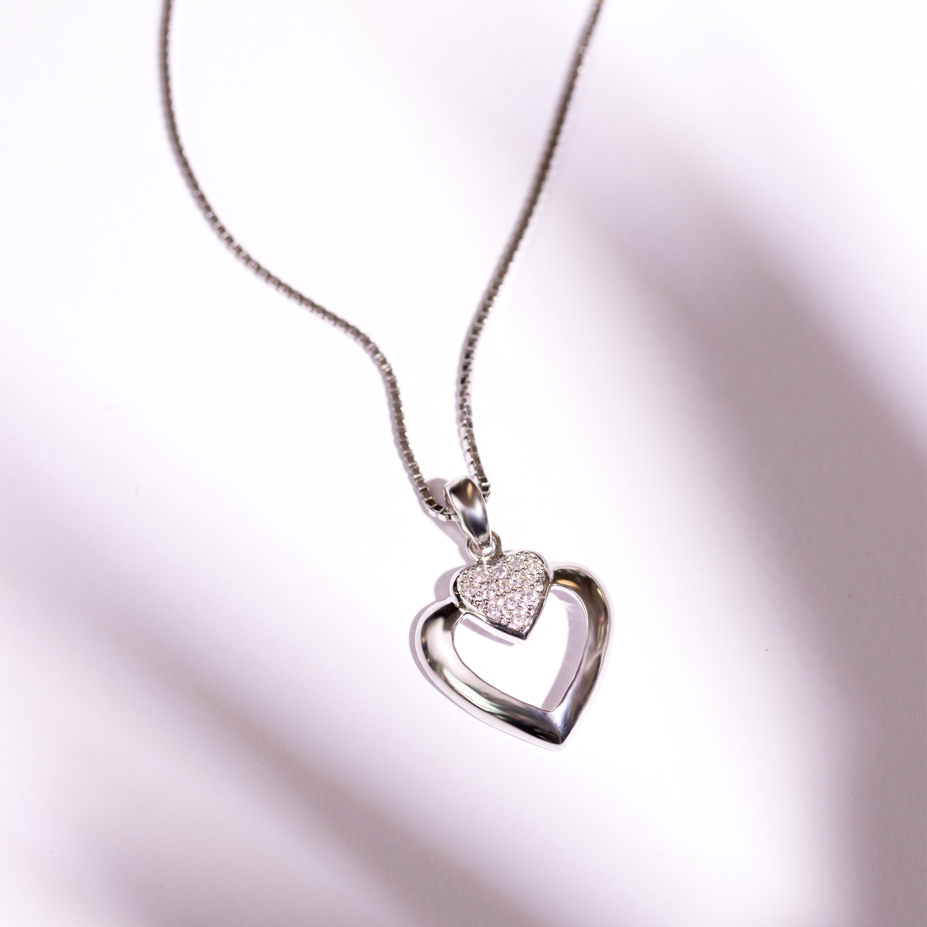 Forelsk dig i vores Jenny halskæde med dobbelt hjertevedhæng – en hyldest til kærligheden! Det åbne hjerte symboliserer frihed og det mindre hjerte, smukt besat med klare zirkonia sten, repræsenterer det gnistrende øjeblik, hvor kærligheden blomstrer. En subtil og rørende tilføjelse til enhver smykkesamling.
