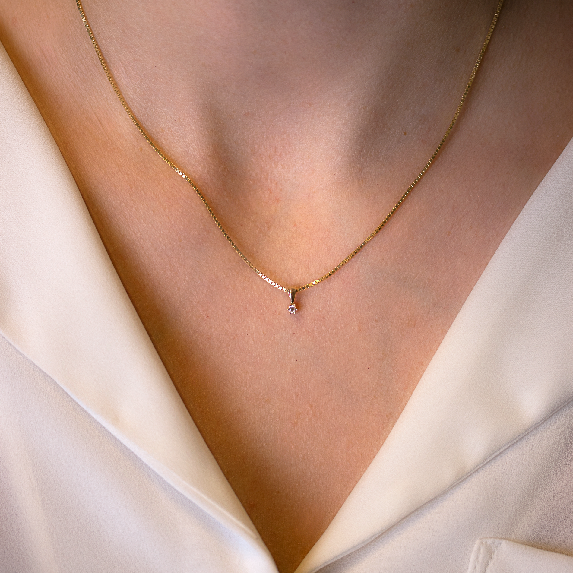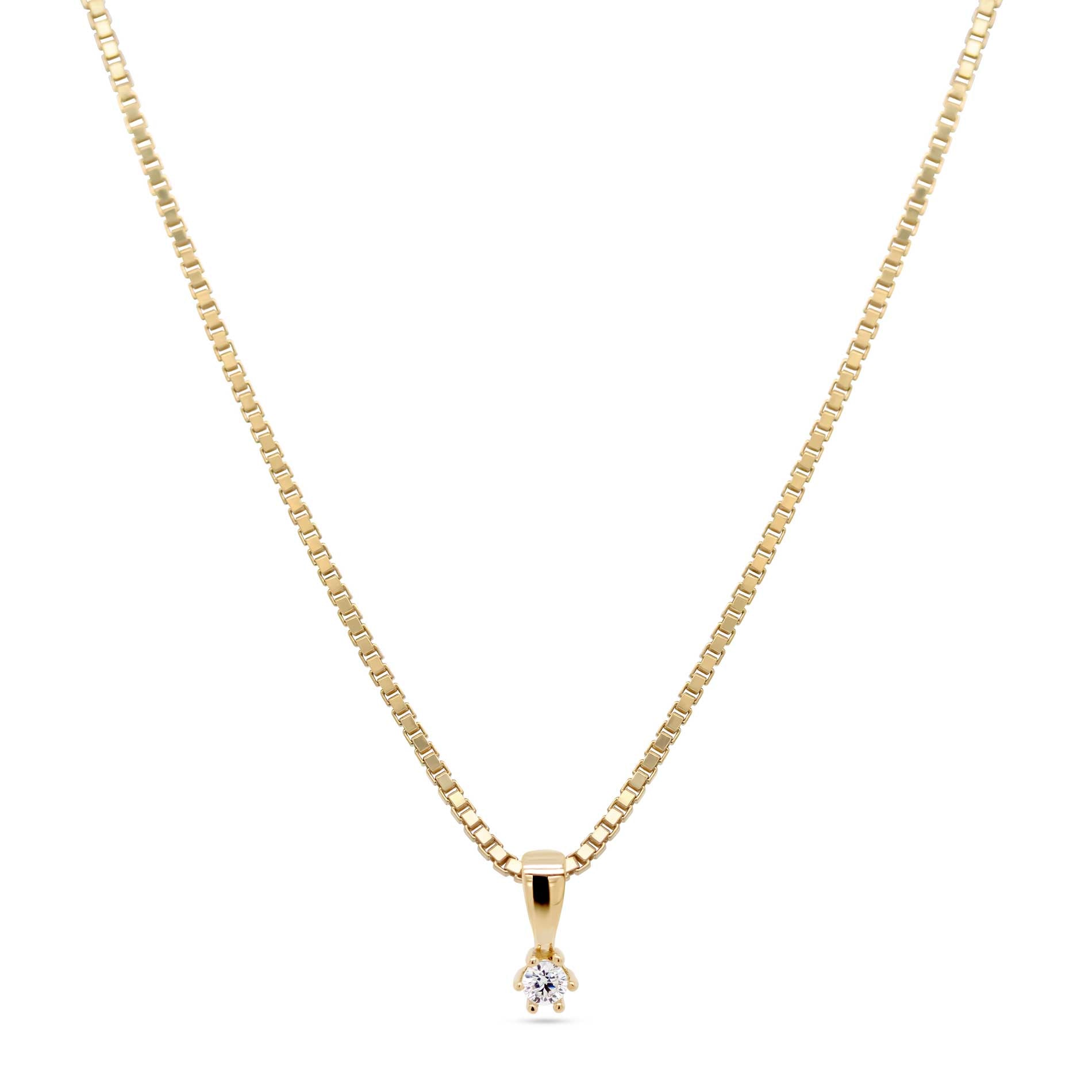 Venedi vedhænget er et smukt og klassisk smykke i 8 karat guld, der udstråler enkel elegance. Den funklende hvide zirkonia sten i midten giver et sofistikeret look. Perfekt som et delikat hverdagssmykke eller som en gave til en særlig person.