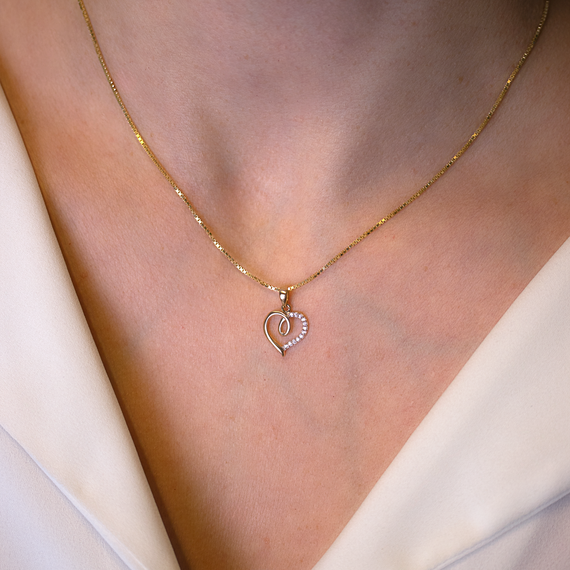 Loop Hjertevedhænget i 14 karat guld er et romantisk og elegant smykke, der fanger opmærksomheden med sin smukke hjertedesign. Den ene side af hjertet er besat med klare zirkonia sten, hvilket tilføjer et strejf af glamour og glans. Dette vedhæng er perfekt til både daglig brug og specielle lejligheder og vil uden tvivl være et værdifuldt smykke i din samling. Vedhænget leveres med en forgyldt sølvkæde.