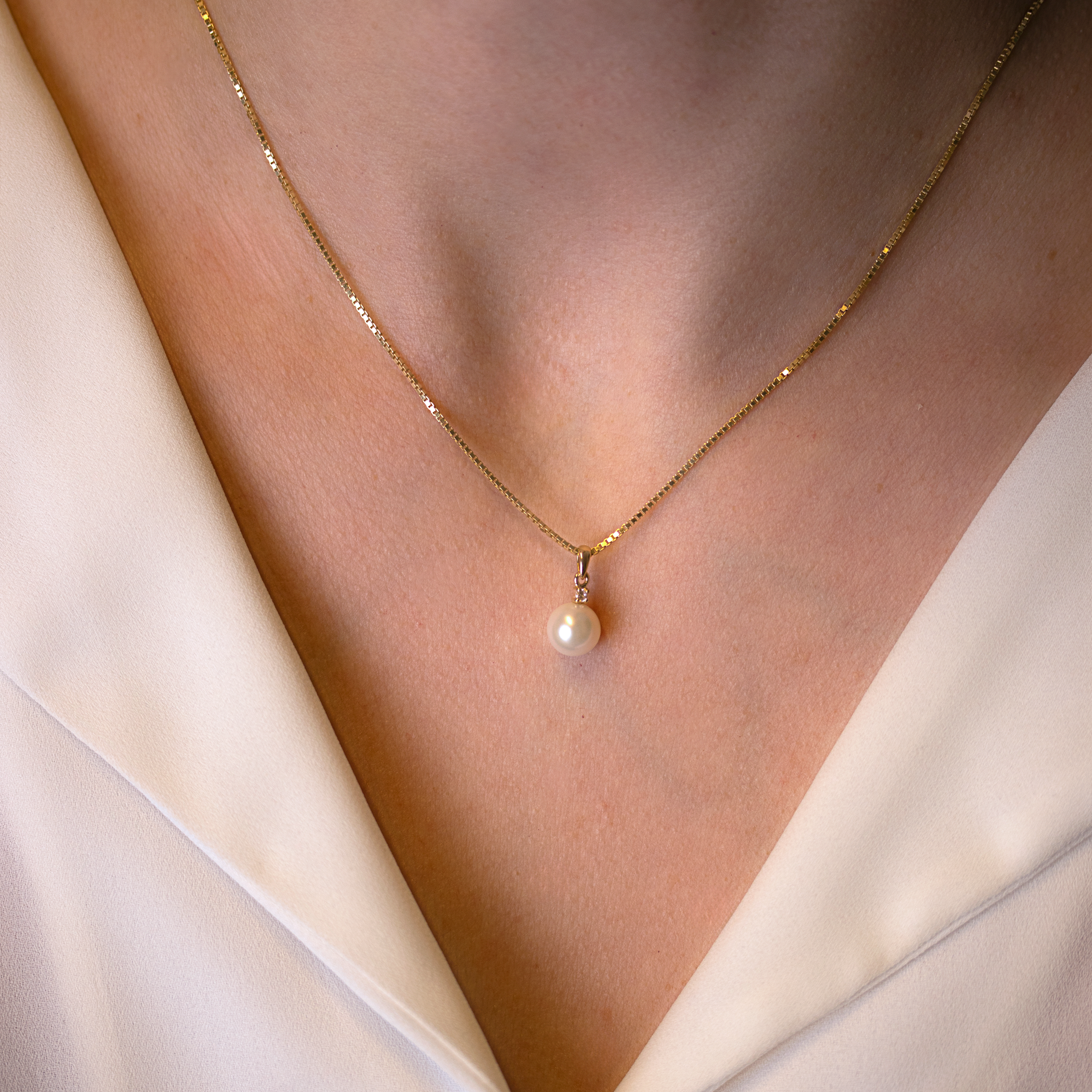 Palermo vedhænget i 8 karat guld kombinerer elegance og tidløs skønhed. En strålende hvid zirkonia sten er smukt placeret over en klassisk hvid ferskvandsperle, hvilket skaber et sofistikeret udtryk. Vedhænget leveres med en forgyldt sølvkæde, der komplementerer designet perfekt. Et ideelt smykke til at fremhæve dit look, uanset om det er til hverdag eller fest.