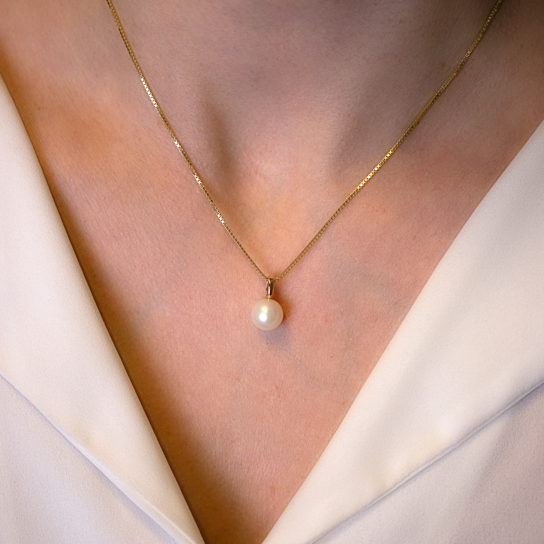 Perlevedhæng i 14 karat guld er et tidløst og klassisk smykke, der tilføjer elegance til enhver garderobe. Den smukt lyste perle i kombination med det fine 14 karat guld gør dette vedhæng til et perfekt valg til både daglig brug og festlige lejligheder. Den enkle design understreger perlens naturlige skønhed og giver et sofistikeret udtryk, der kan bæres i mange år. Vedhænget leveres med en forgyldt sølvkæde.