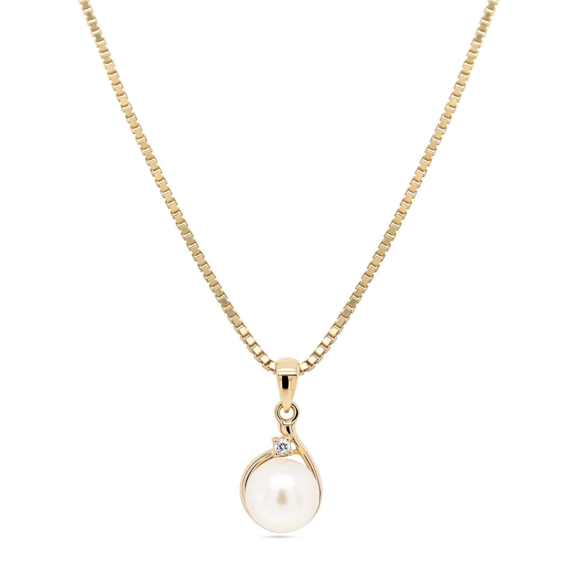 Perlevedhæng i 14 karat guld med 0,015 carat diamant