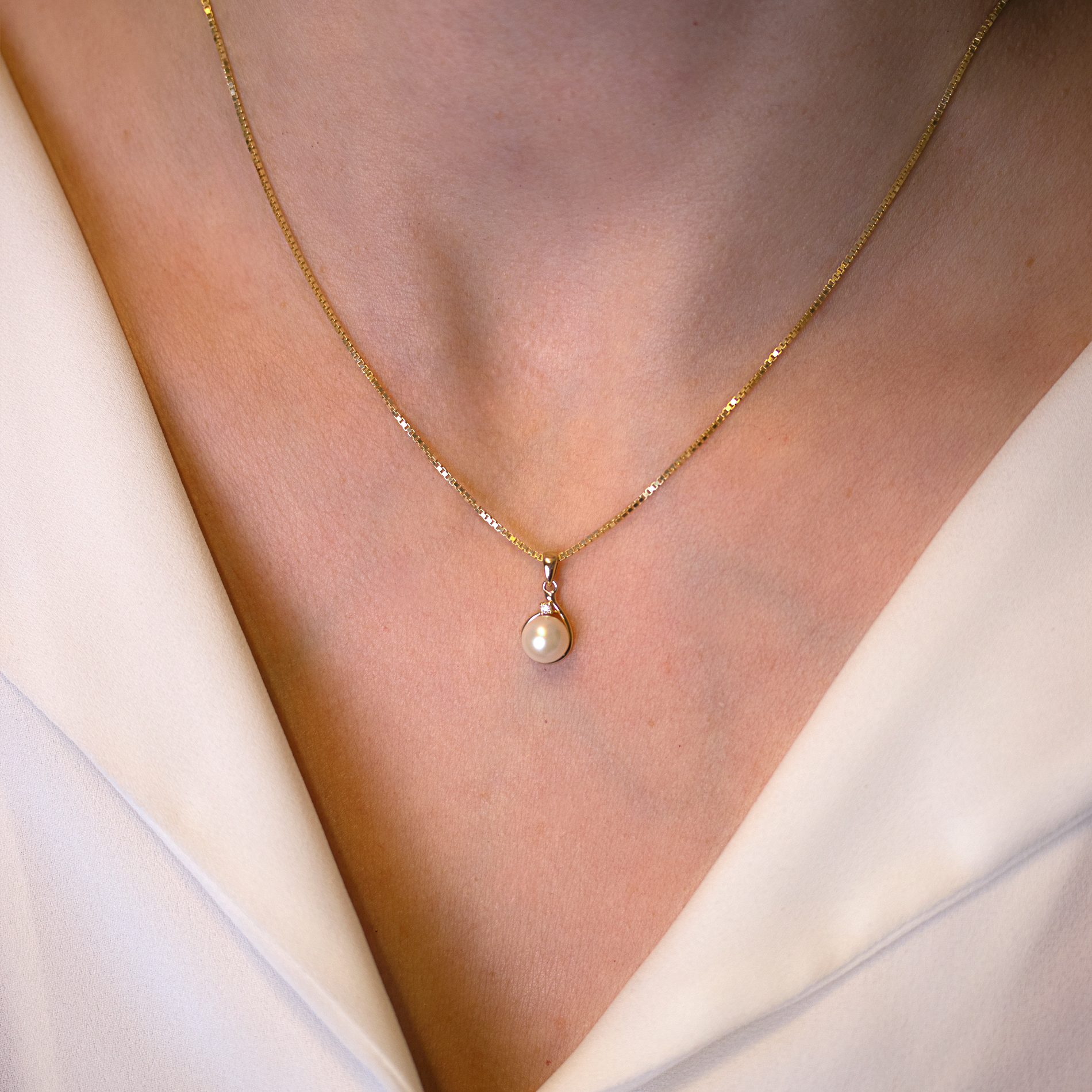Perlevedhænget i 14 karat guld er et tidløst og klassisk smykke, der tilføjer elegance til enhver garderobe. Den smukt lyste perle i kombination med det fine 14 karat guld og den smukke diamant, gør dette vedhæng til et perfekt valg til både daglig brug og festlige lejligheder. Den enkle design understreger perlens naturlige skønhed og giver et sofistikeret udtryk, der kan bæres i mange år. Vedhænget leveres med en forgyldt sølvkæde.