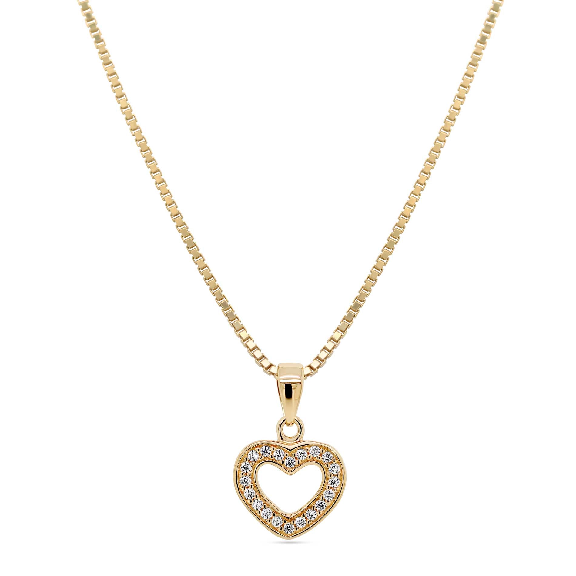 Sparkling Heart vedhænget i 14 karat guld er en elegant hyldest til klassisk skønhed. Dette tidløse vedhæng prydes af funklende klare zirkonia sten, der fanger lyset smukt og tilføjer et strejf af glamour til enhver stil. Perfekt som gave til en du holder af, eller som en luksuriøs tilføjelse til din egen smykkesamling. Vedhænget leveres med en forgyldt sølvkæde.