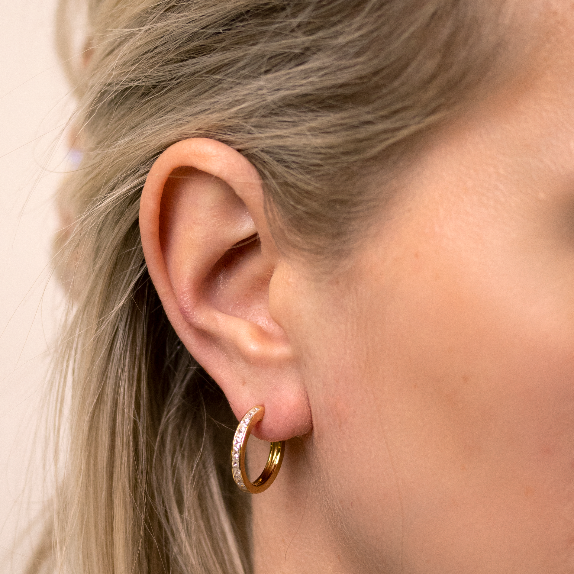 Amsterdam creolerne i forgyldt sølv udstråler tidløs elegance med deres enkle, men sofistikerede design. Udsmykket med en række hvide zirkonia sten, som skaber en subtil glans, er disse creoler ideelle til både hverdagsbrug og festlige begivenheder.