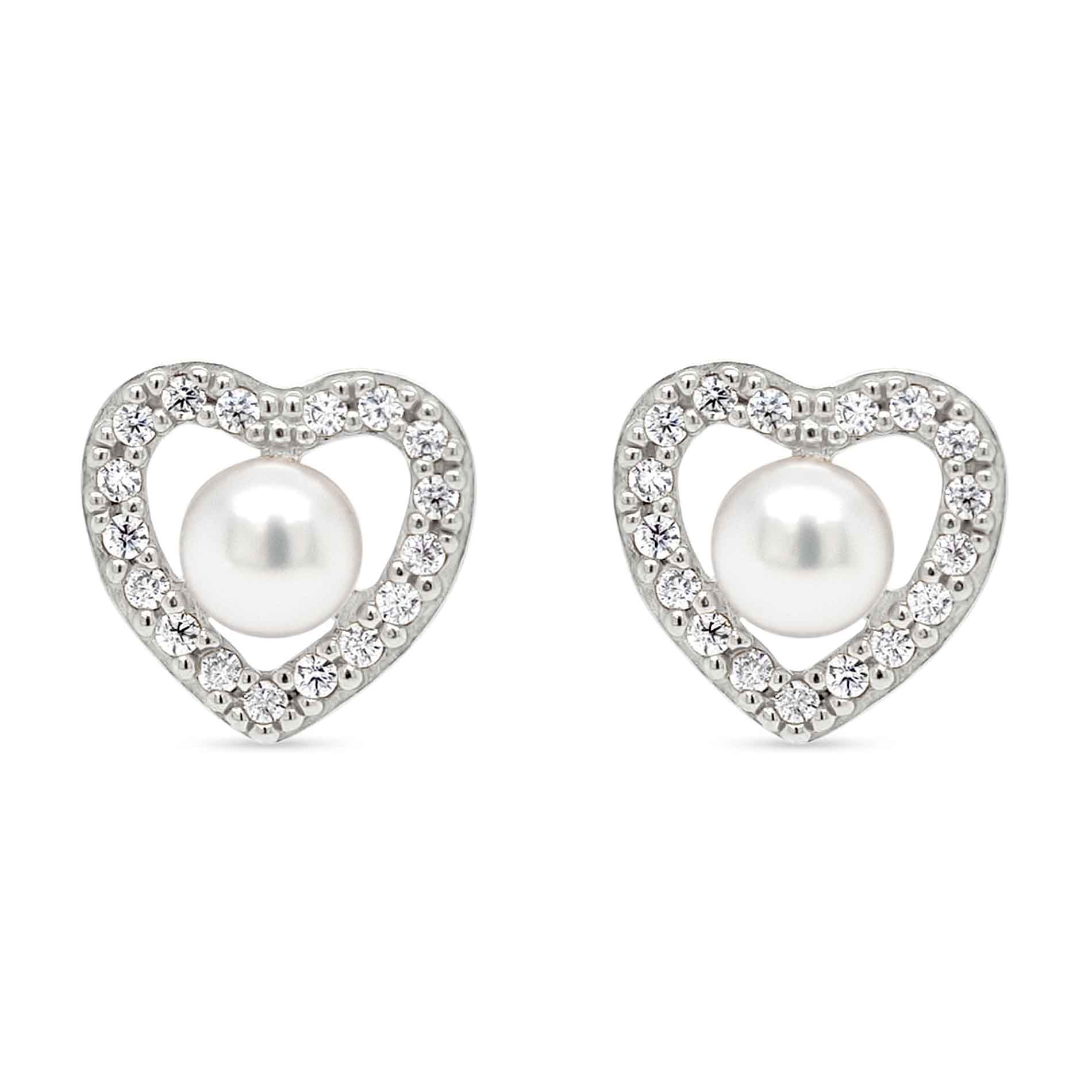 Chester øreringene i sterling sølv kombinerer romantik og elegance i et smukt design. En perle pryder midten, omgivet af et hjerte besat med funklende hvide zirkonia. Disse øreringe er perfekte til at tilføje et sofistikeret og kærligt touch til enhver stil, uanset om det er til en særlig lejlighed eller til at pifte hverdagen op.