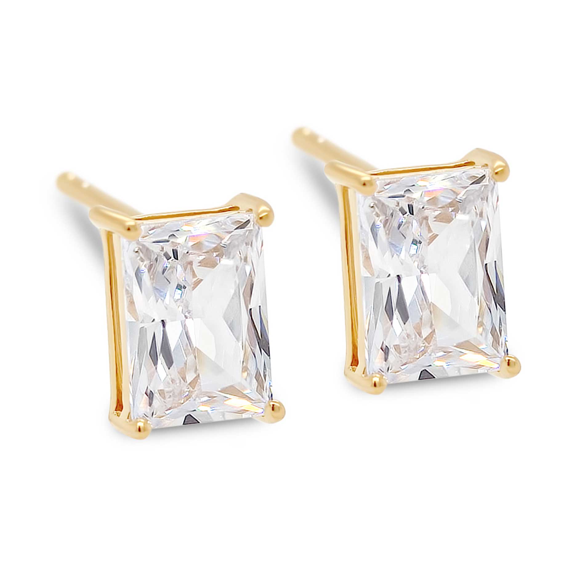 Emerald Cut Solitaire ørestikker i forgyldt