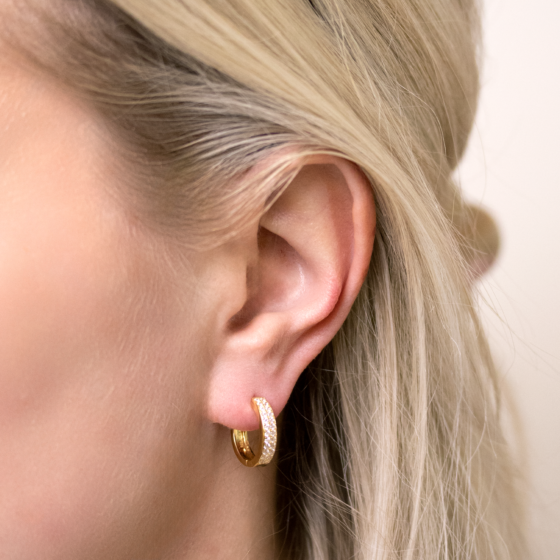 Luton creolerne i forgyldt sølv er et strålende valg for dig, der ønsker at tilføje et ekstra strejf af glamour til din stil. De er prydet med to rækker af hvide zirkonia, der glitrer i lyset og skaber et luksuriøst udtryk. Disse creoler er perfekte til både dag-til-dag brug og særlige anledninger, og vil helt sikkert blive et yndlingssmykke i din samling.