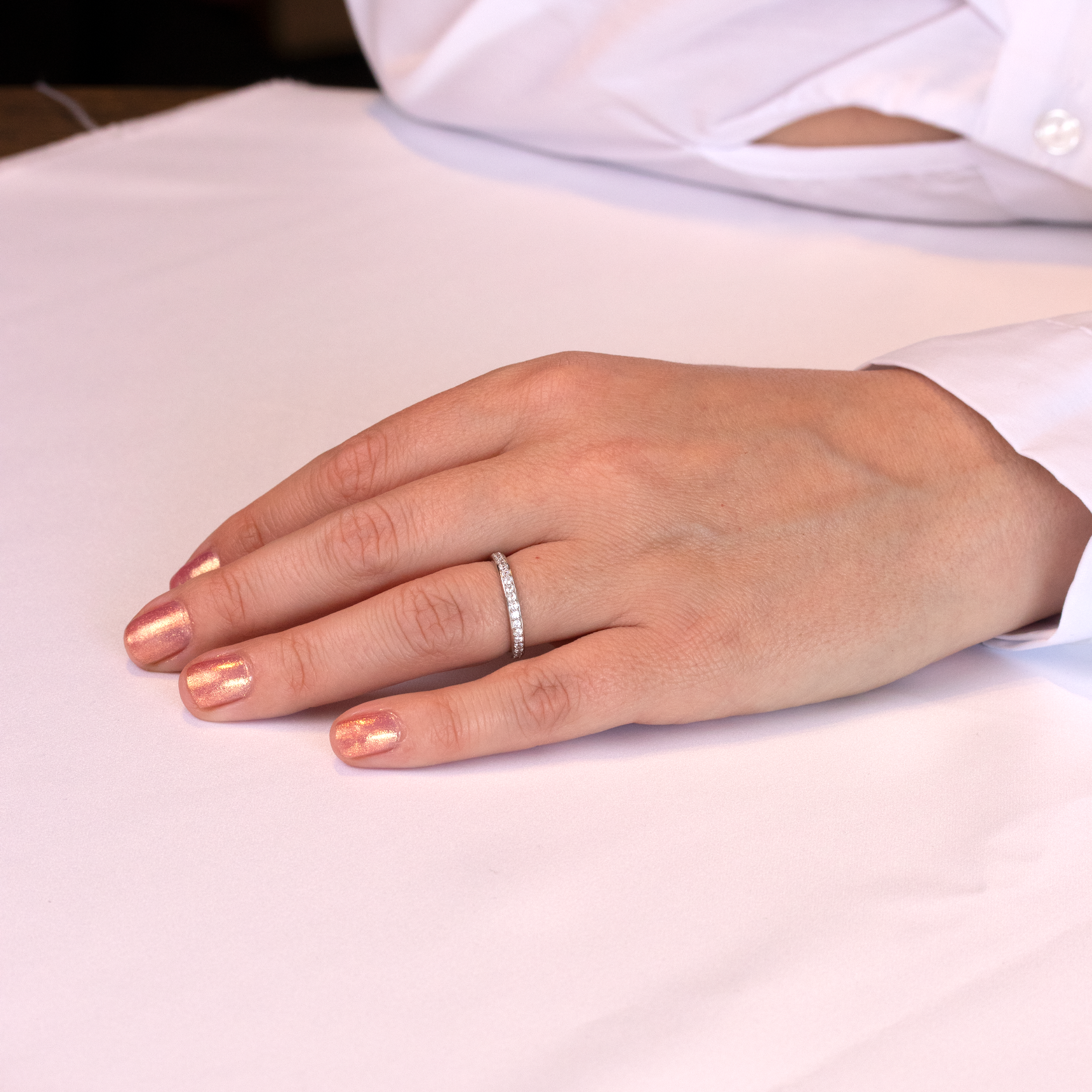 Indfør en tidløs elegance i din hverdag med vores smukke alliancering i sølv, prydet med glitrende hvide zirkonia sten. De strålende zirkonia sten, indfattet i det glinsende sølv, tilføjer en subtil glamour til ethvert outfit. Lad denne alliancering være et evigt symbol på din kærlighed og engagement.