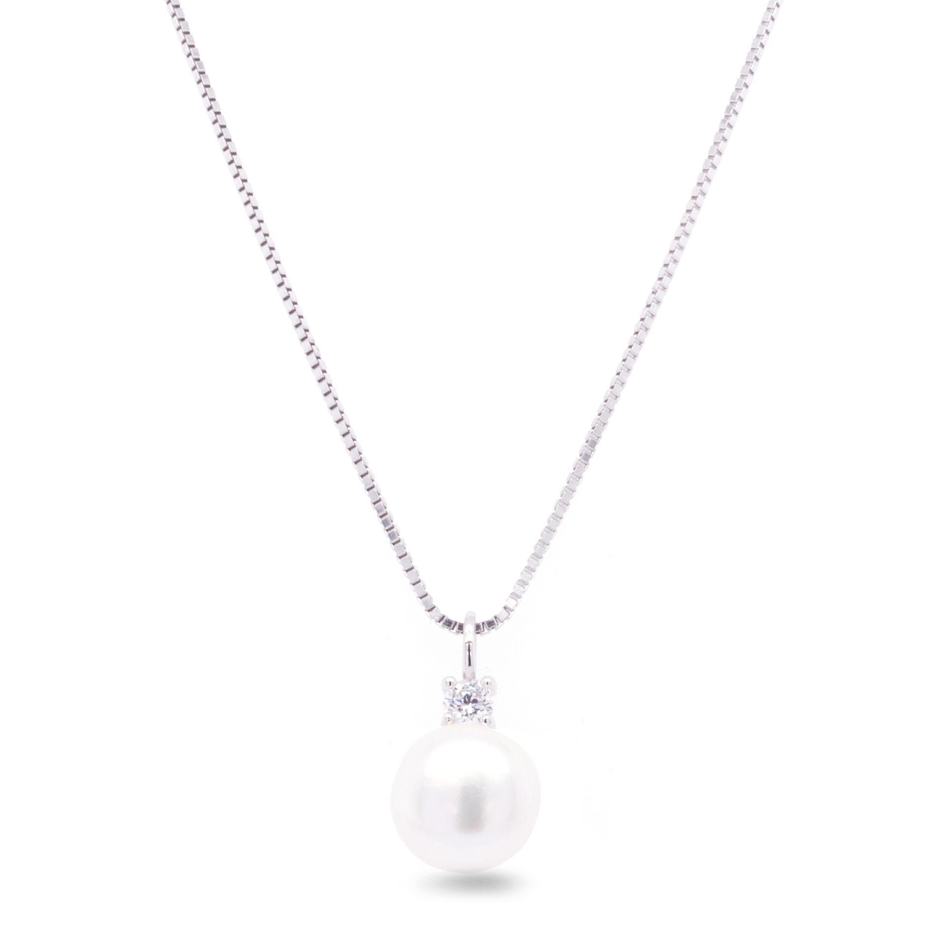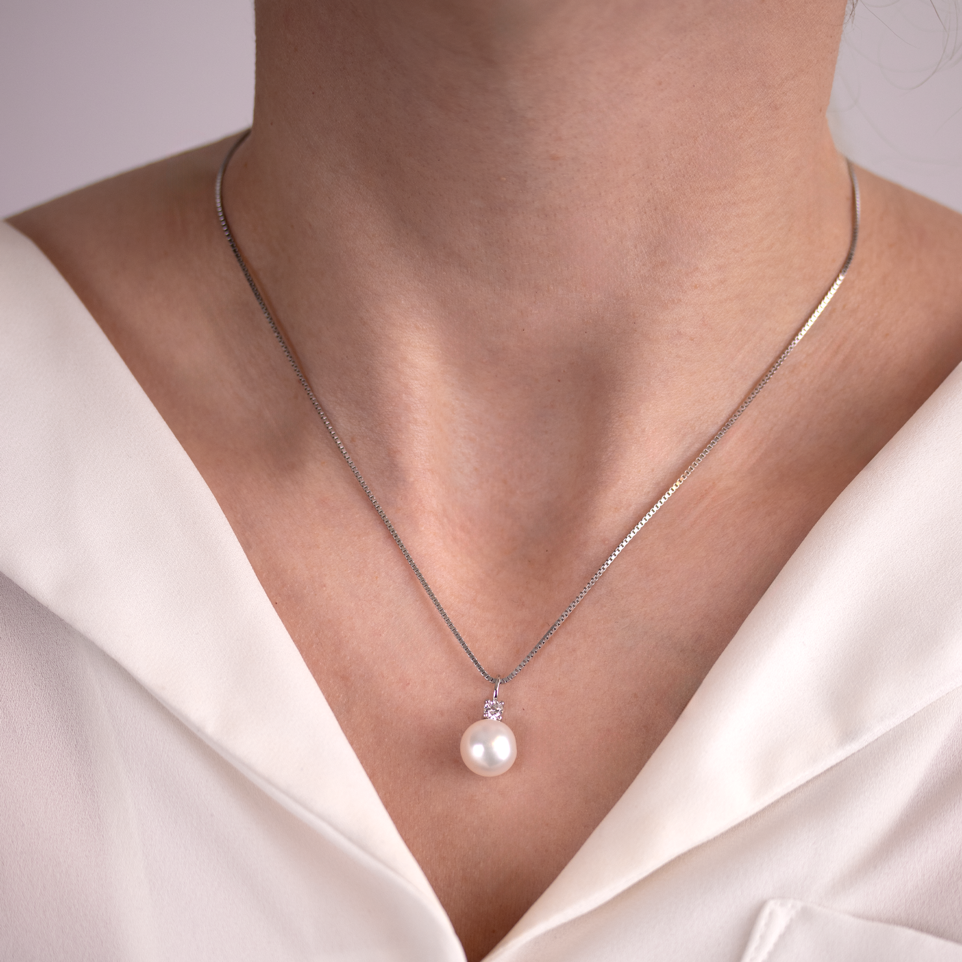 Oplev sublim enkelhed med vores Alva halskæde i sølv. Det delikate perlevedhæng ledsages af en gnistrende klar zirkonia, der tilføjer et diskret strejf af elegance. En hyldest til klassisk skønhed og tidløs stil.