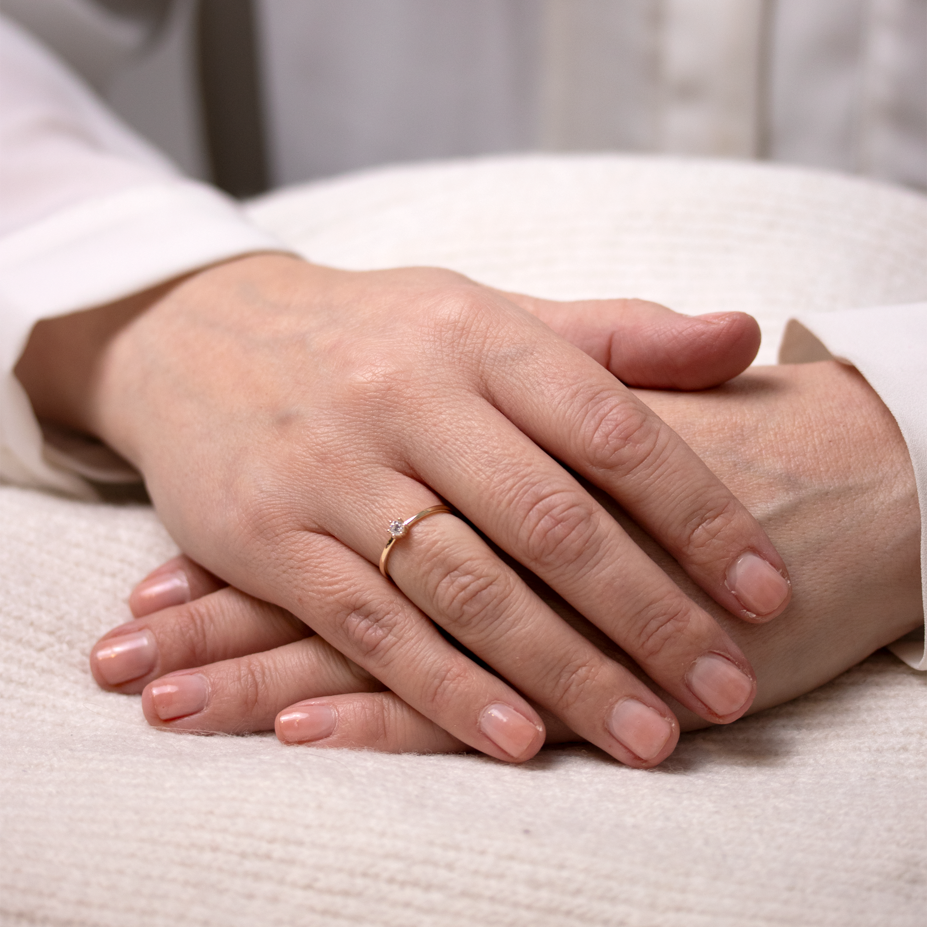 Brianna ringen i 8 karat guld er et minimalistisk og stilfuldt smykke, der er perfekt til den, der ønsker et elegant og tidløst design. Ringen er prydet med en enkelt, strålende hvid zirkonia sten, der giver et subtilt men smukt fokus. Denne enkle, men raffinerede ring kan bruges alene for et klassisk look eller sammen med andre smykker for et mere personligt udtryk.