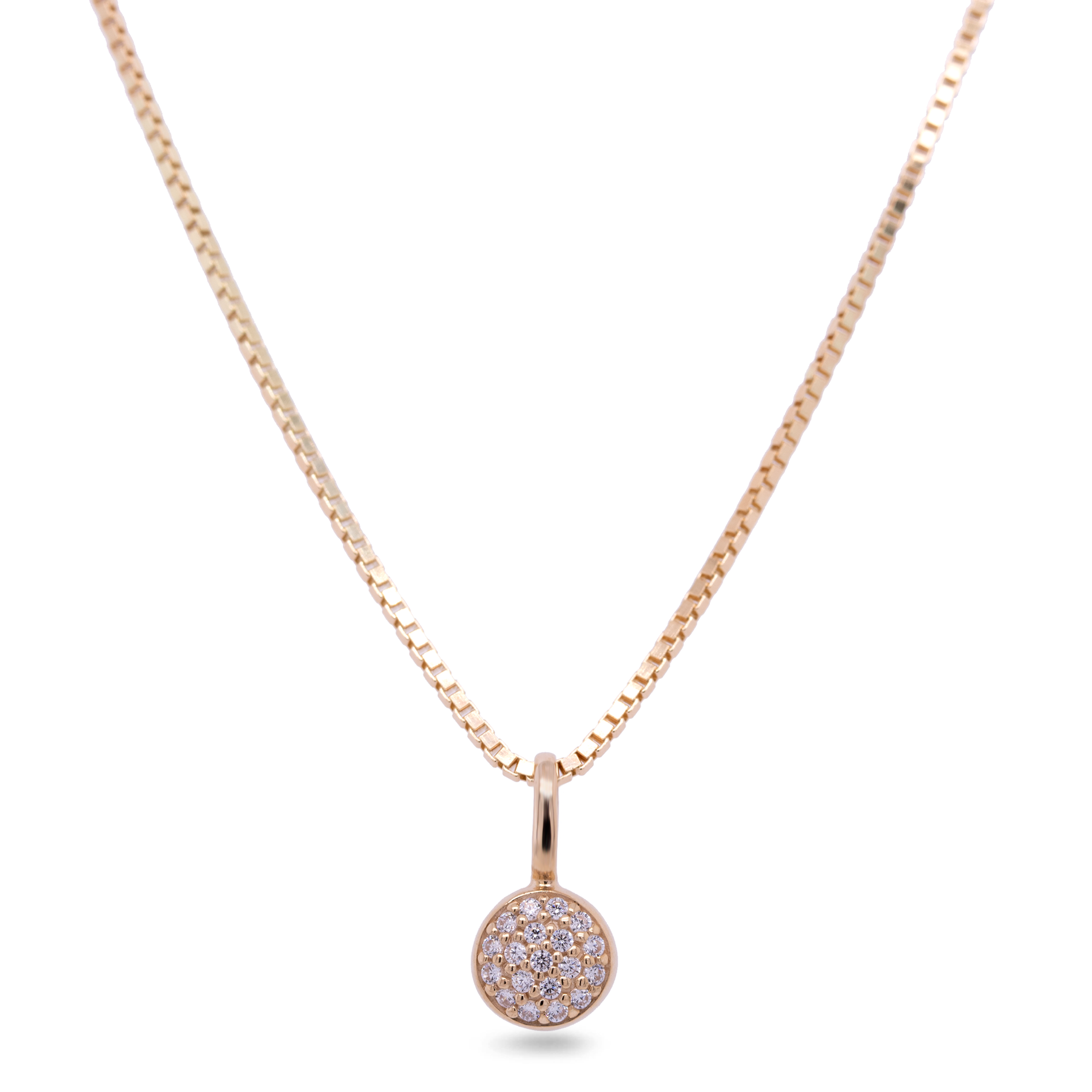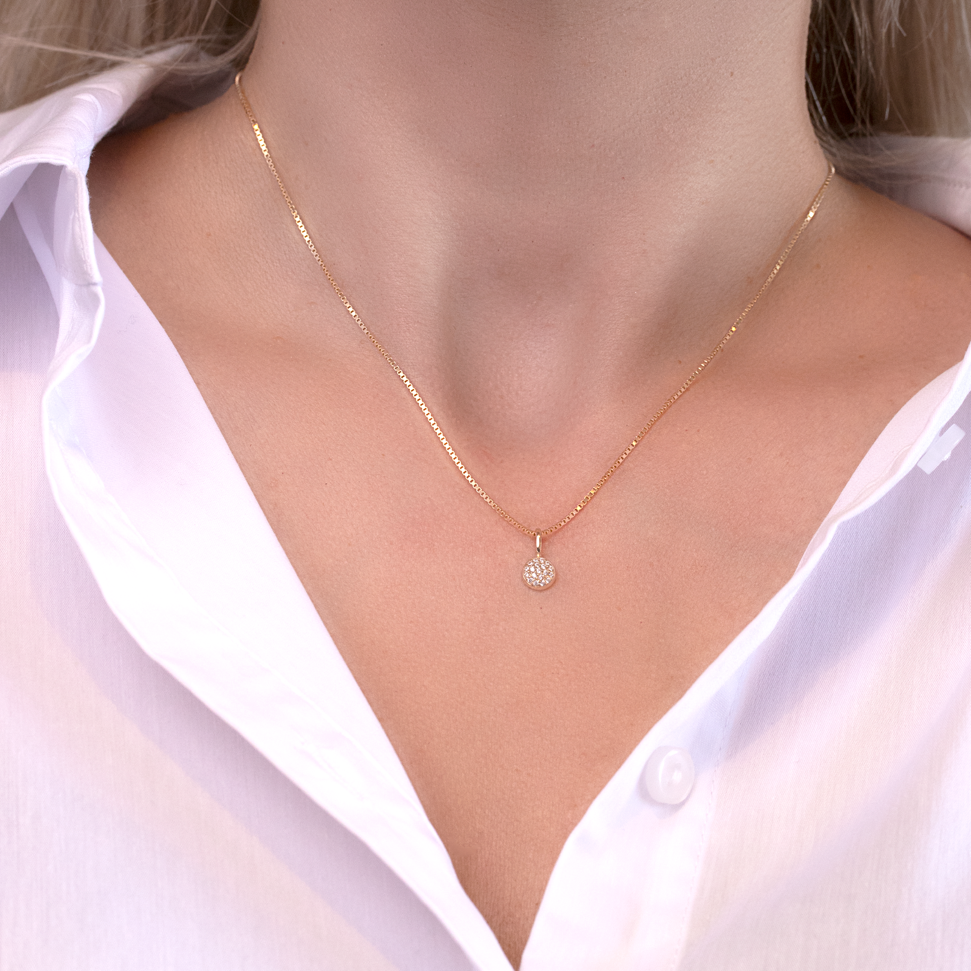 Udforsk vores elegante Fiona halskæde i 8 karat guld. Det smukke vedhæng er besat med glitrende zirkonia sten, der skaber en perfekt balance mellem enkelhed og luksus.