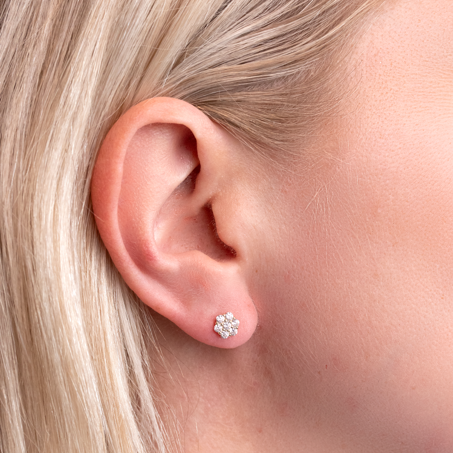 Vores smukker Flower ørestikker i 8 karat guld er et strålende udtryk for enkel elegance. De hvide/klare zirkonia sten fanger lyset på smukkeste vis, hvilket gør disse ørestikker til den perfekte ledsager til enhver lejlighed. Et subtilt og alligevel iøjnefaldende smykke, der tilføjer et strejf af glans til enhver samling.