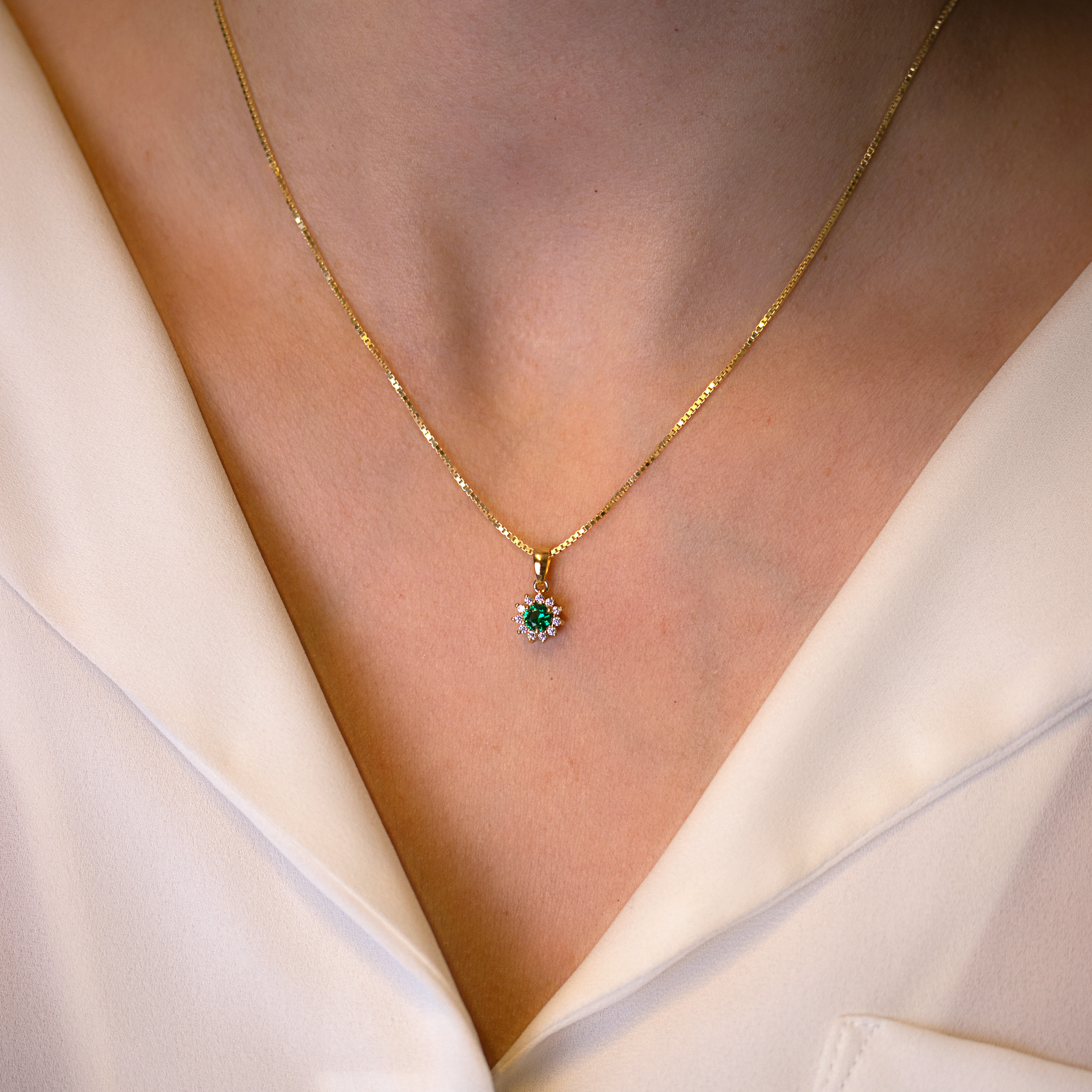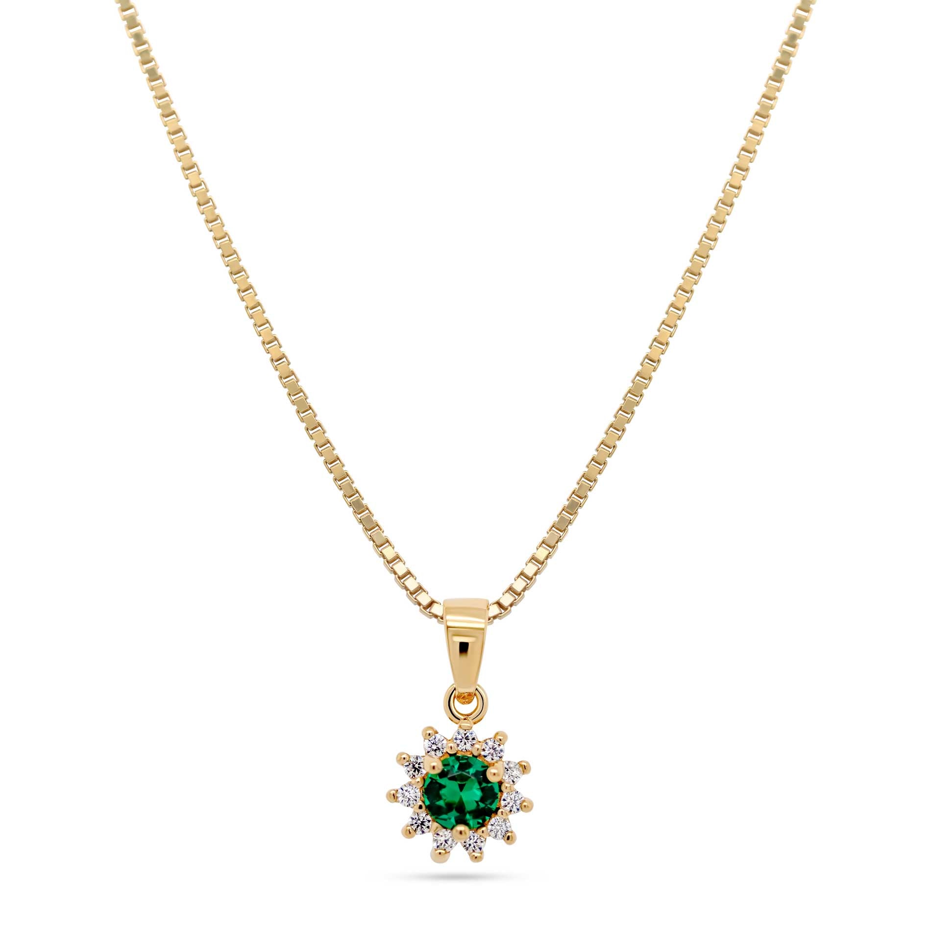 Indfør et strejf af let elegance med vores Green Flower roset halskæde. Et fortryllende grøn zirkonia sten, omgivet af gnistrende hvide zirkonia sten, skaber et imponerende smykke, der fanger opmærksomheden. Giv din stil et elegant løft med denne unikke og smukke halskæde.