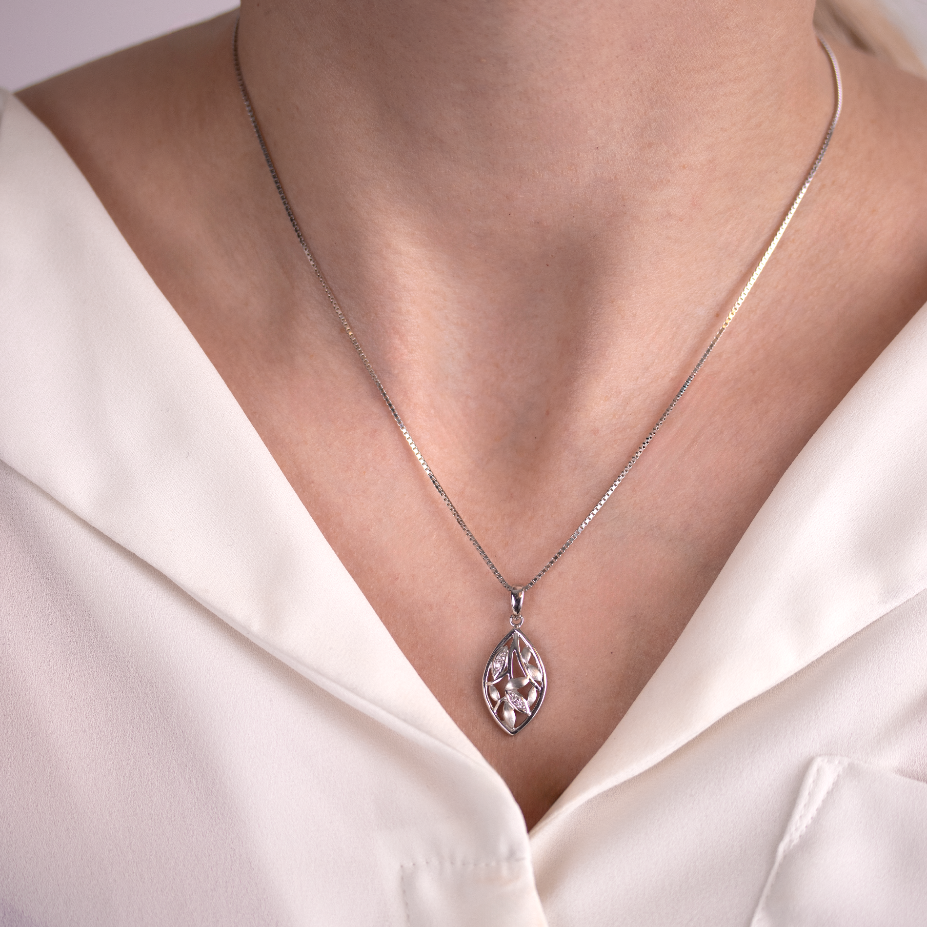 Udforsk naturens elegance med vores Gry halskæde i sølv. Det smukke bladvedhæng, delikat udsmykket med skinnende zirkonia detaljer, giver et subtilt strejf af luksus til din stil. Gry halskæden er det perfekte valg for dem, der ønsker at forene natur og glamour i et enkelt smykke.