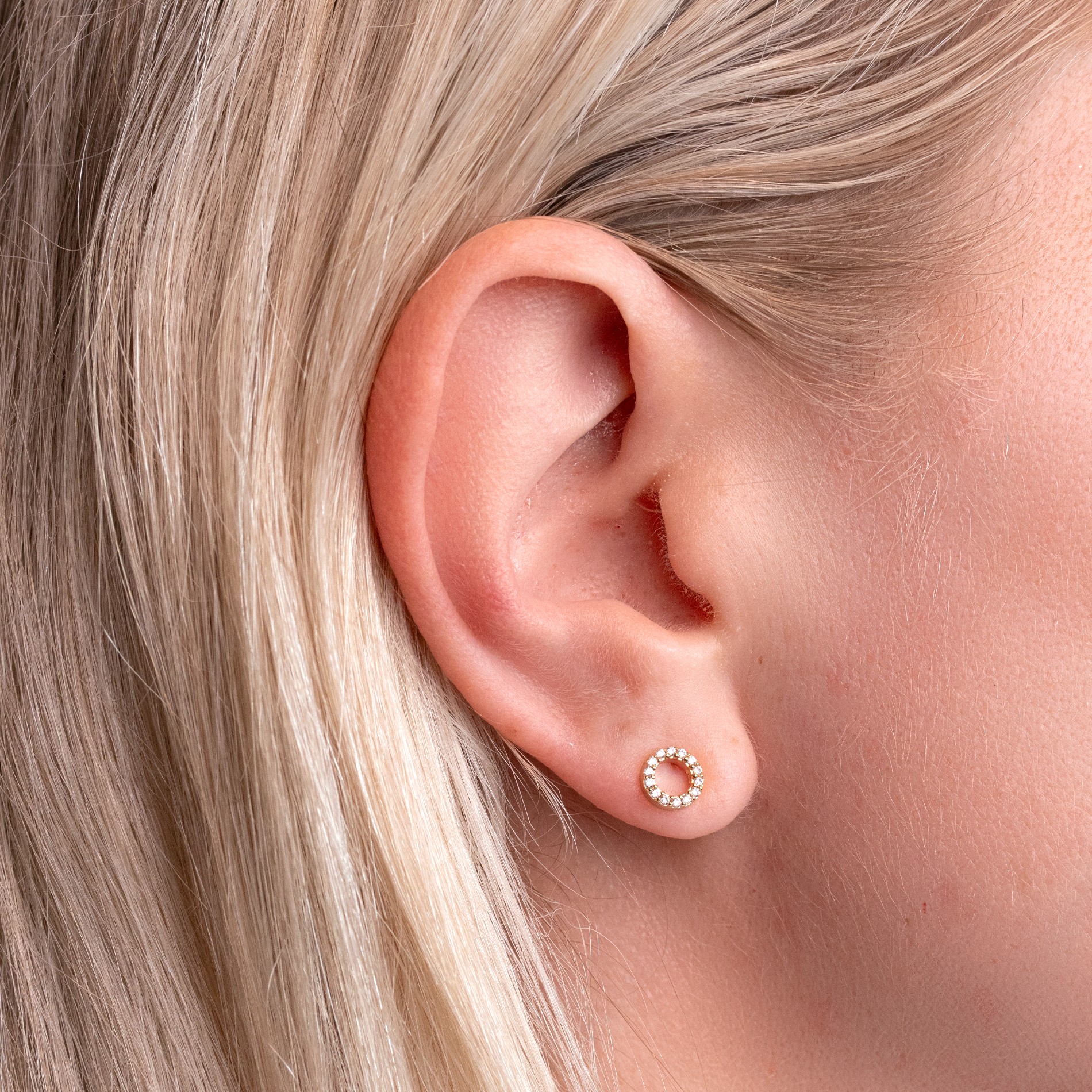Vores Halo ørestikker i forgyldt sterling sølv er et strålende udtryk for enkel elegance. De hvide/klare zirkonia sten fanger lyset på smukkeste vis, hvilket gør disse ørestikker til den perfekte ledsager til enhver lejlighed. Et subtilt og alligevel iøjnefaldende smykke, der tilføjer et strejf af glans til enhver samling.