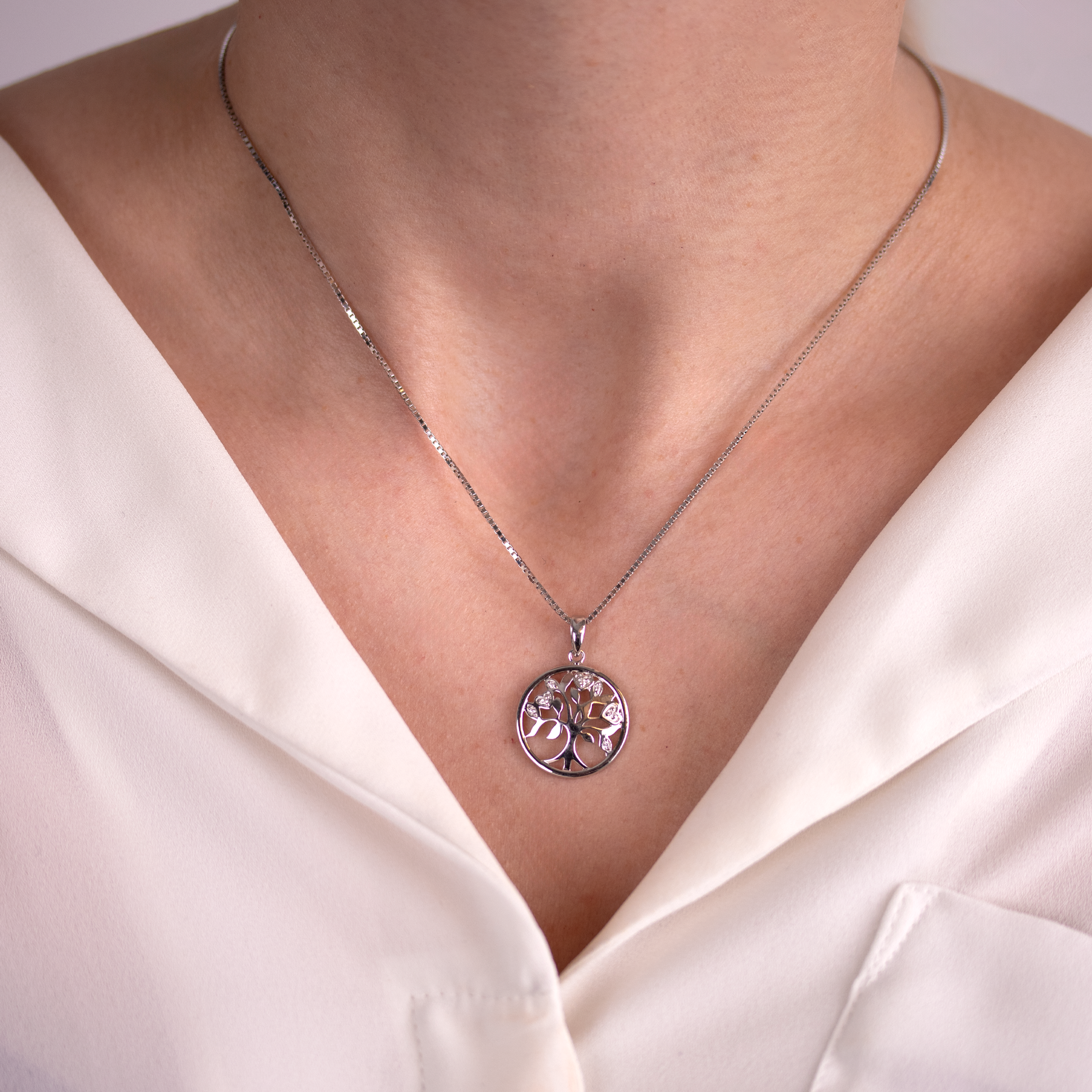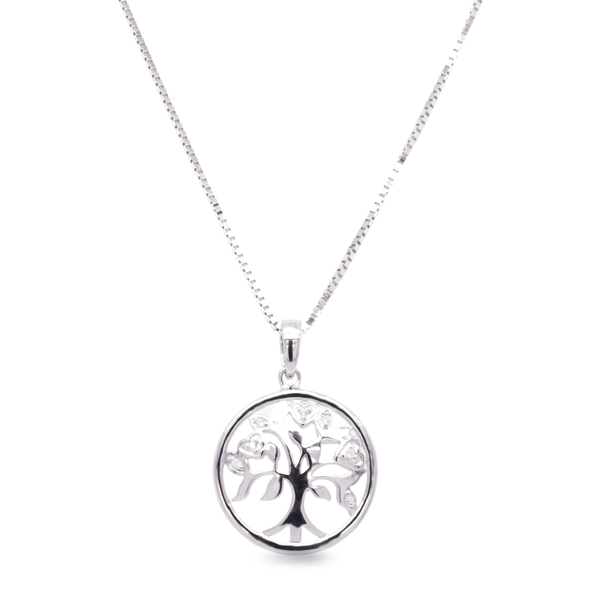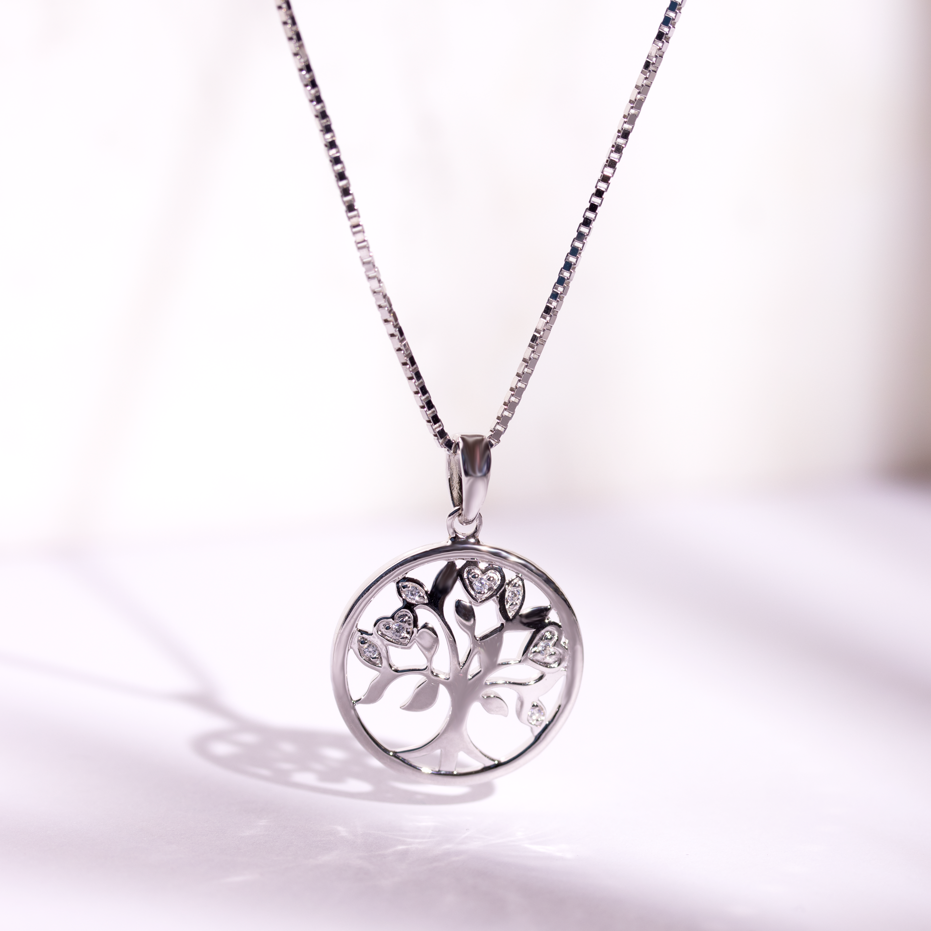 Dyk ned i symbolikken af Livets Træ med vores fortryllende halskæde i sølv. Hjerteformede blade med glitrende zirkonia sten tilføjer en delikat og romantisk touch til dette tidløse smykke. Bær det som et udtryk for vækst, kærlighed og skønheden i livet.