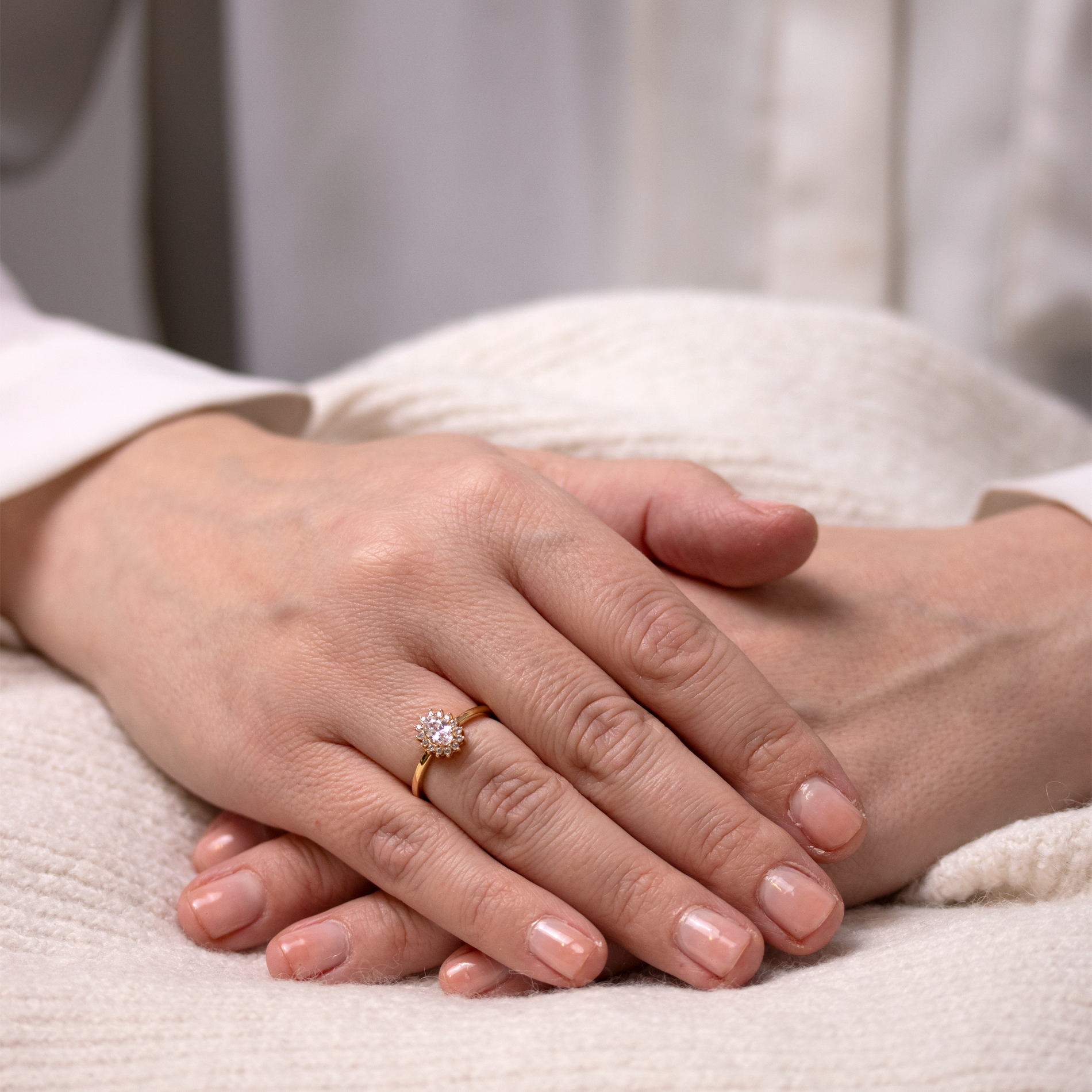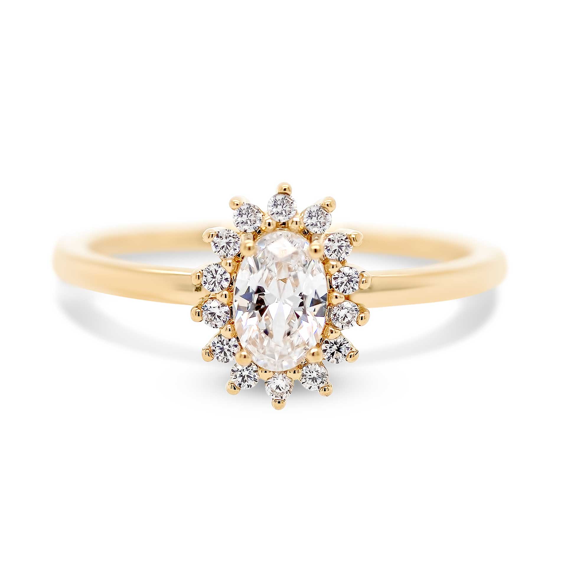Luda ringen i forgyldt sølv er det perfekte smykke til at tilføje et strejf af elegance og glamour til dit look. Den smukke ovale zirkonia sten i midten funkler i lyset og er omgivet af små, hvide zirkonia sten, der skaber en strålende ramme. Med sit sofistikerede design er Luda ringen ideel til både hverdag og festlige anledninger.