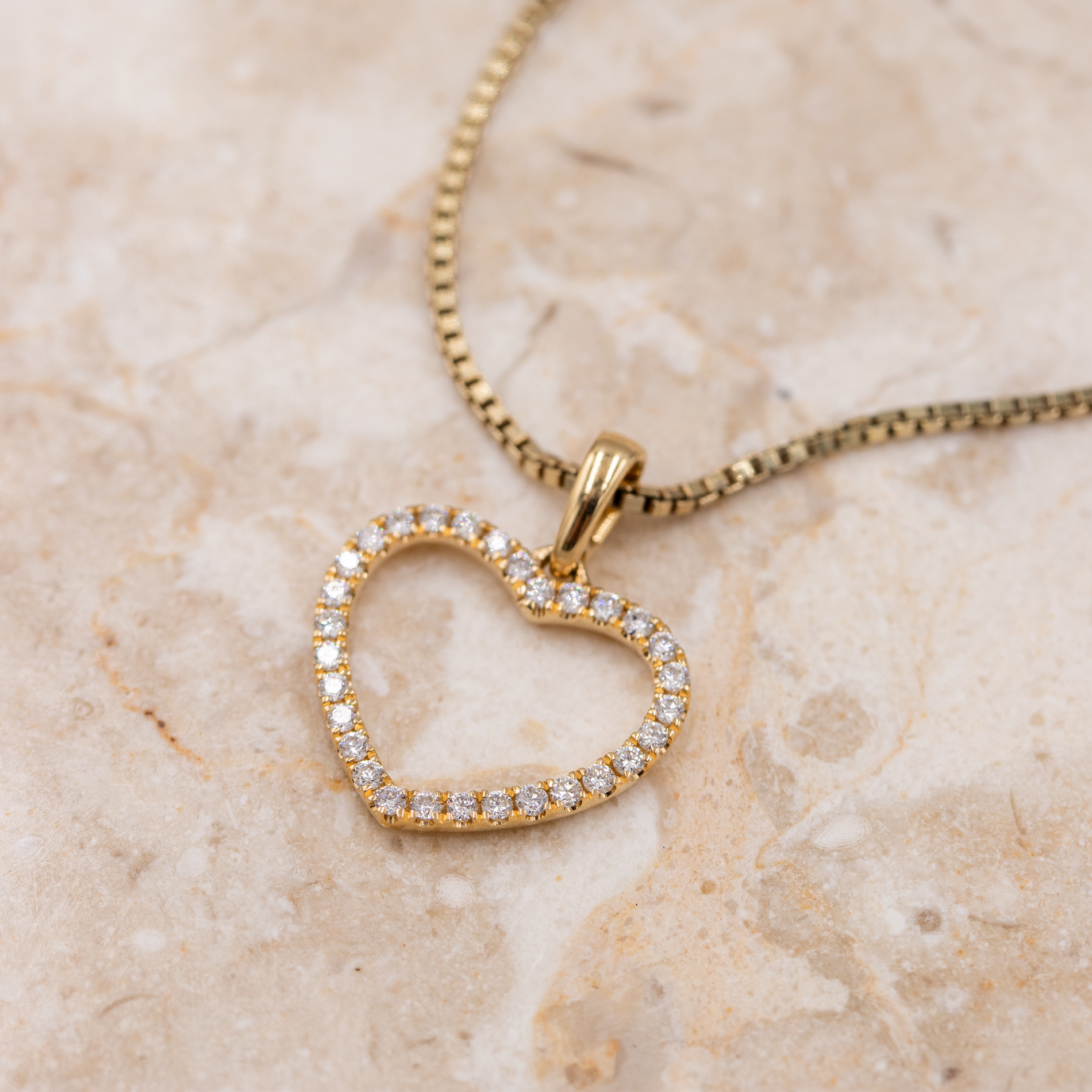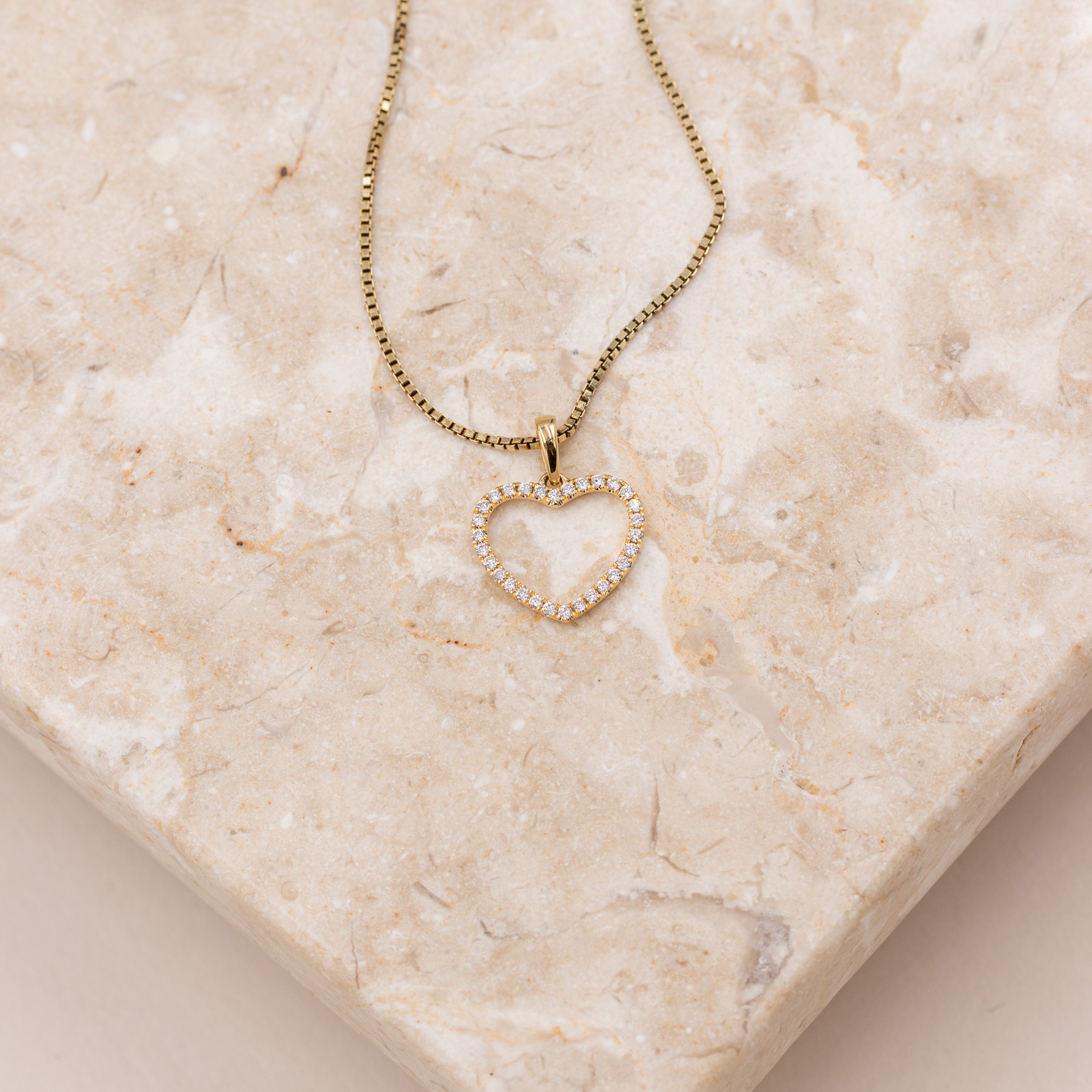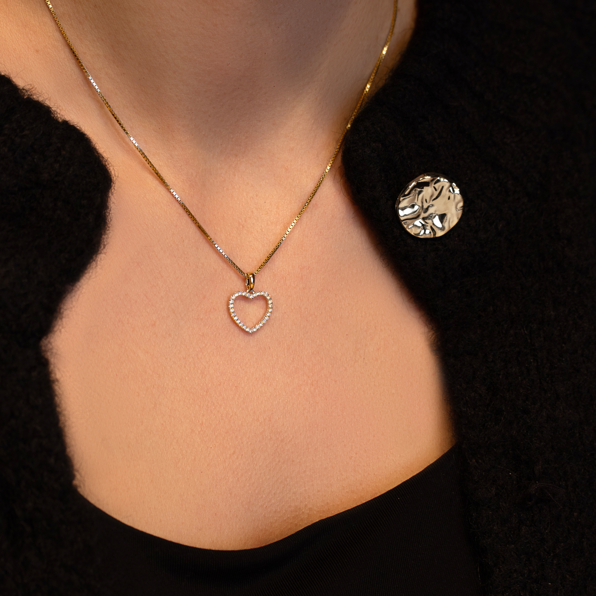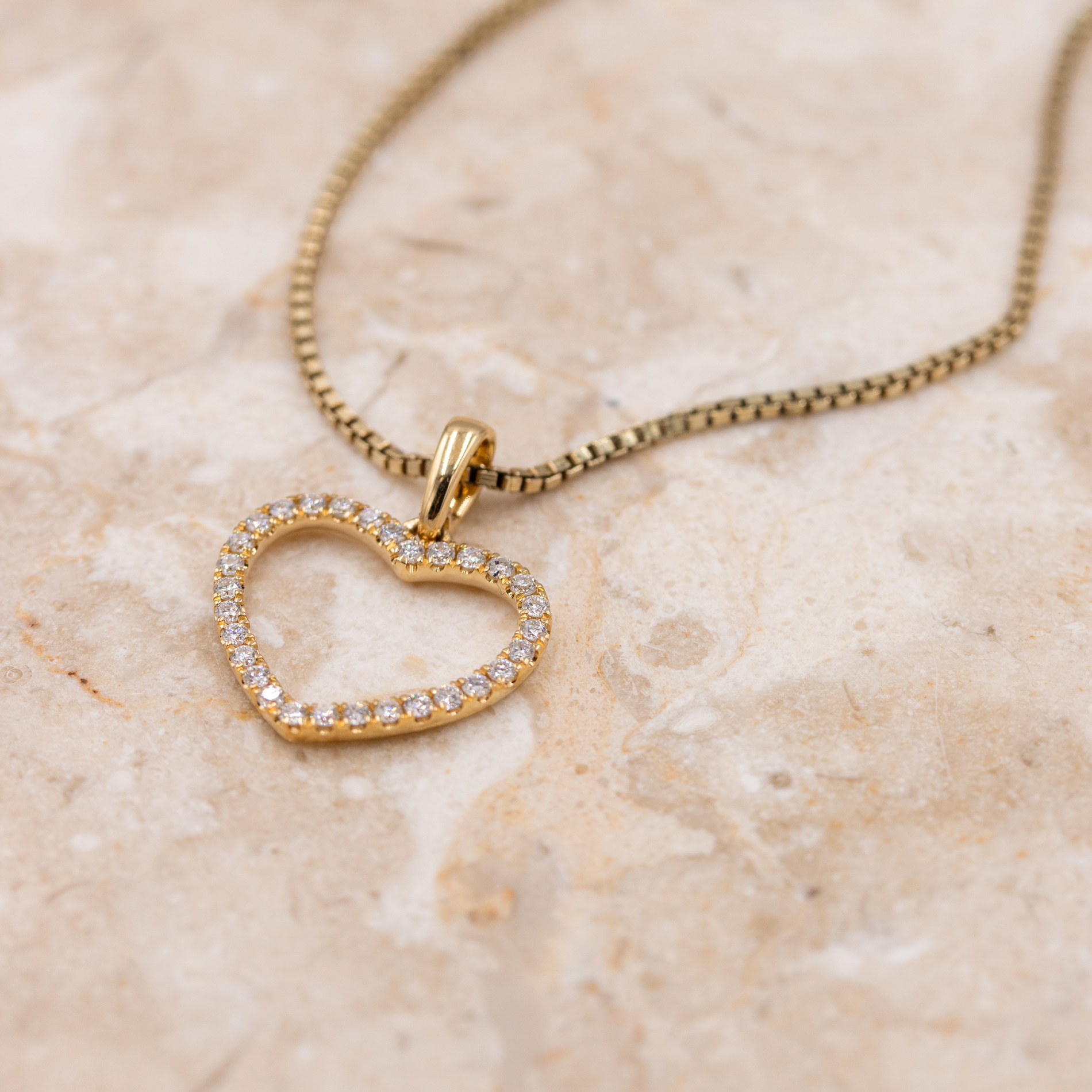 Katinka vedhæng i 18 kt. guld er et elegant og tidløst smykke udformet som et åbent hjerte, smukt indfattet med funklende diamanter. Det varme skær fra guldet kombineret med de i alt 0,19 ct. diamanter giver vedhænget et klassisk og eksklusivt udtryk. Designet er let og feminint og egner sig både til hverdagsbrug og særlige anledninger. Et raffineret vedhæng, der kan bæres alene eller kombineres med andre smykker.