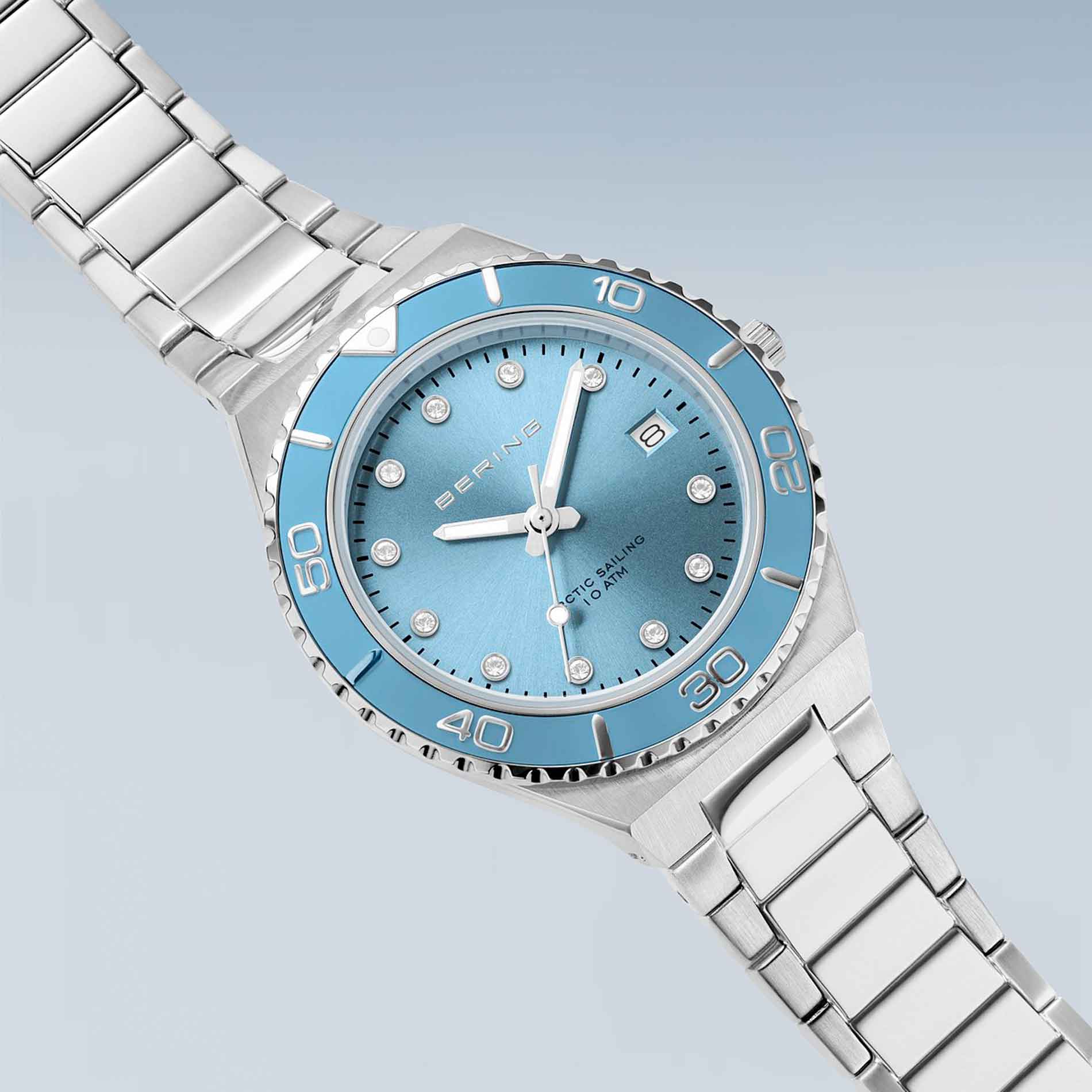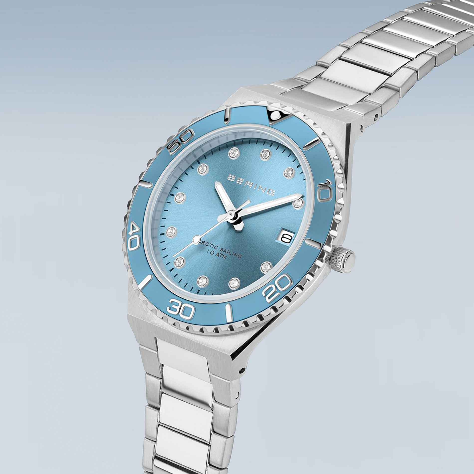 Bering Classic Arctic Sailing uret er en hyldest til eventyr og tidløs stil. Med sin polerede og børstede stålurkasse af rustfrit stål og en diameter på 36 mm udstråler dette ur en subtil elegance og holdbarhed. Safirglasset sikrer en klar og ridsefri skærm, der er egnet til de mest udfordrende miljøer. Den rustfri stållænke med foldespænde giver en behagelig og sikker pasform til ethvert håndled. Den blå urskive tilføjer et dynamisk og friskt element til urets udseende. Med en imponerende vandtæthed på 10 ATM er dette ur perfekt til både hverdagsbrug og eventyr under vandet.