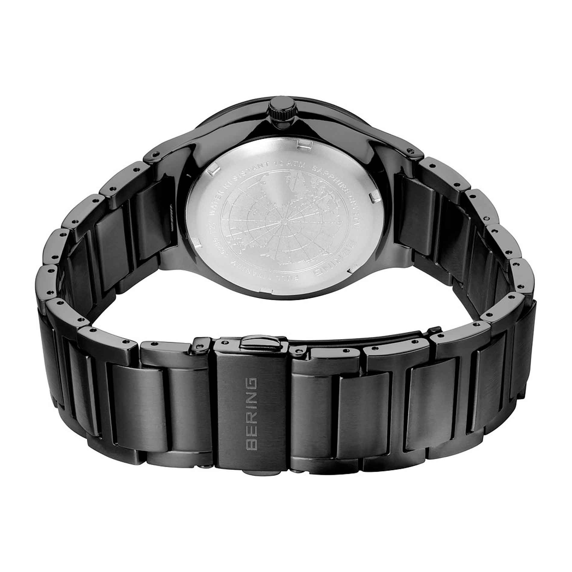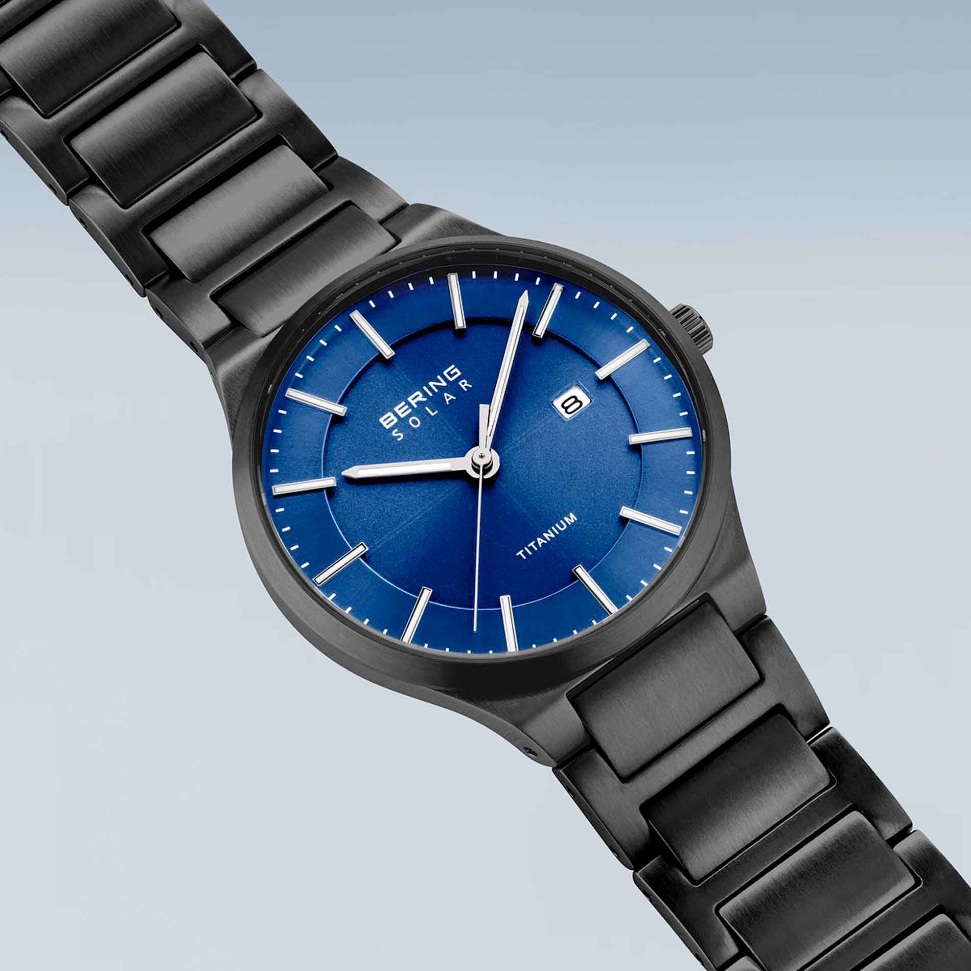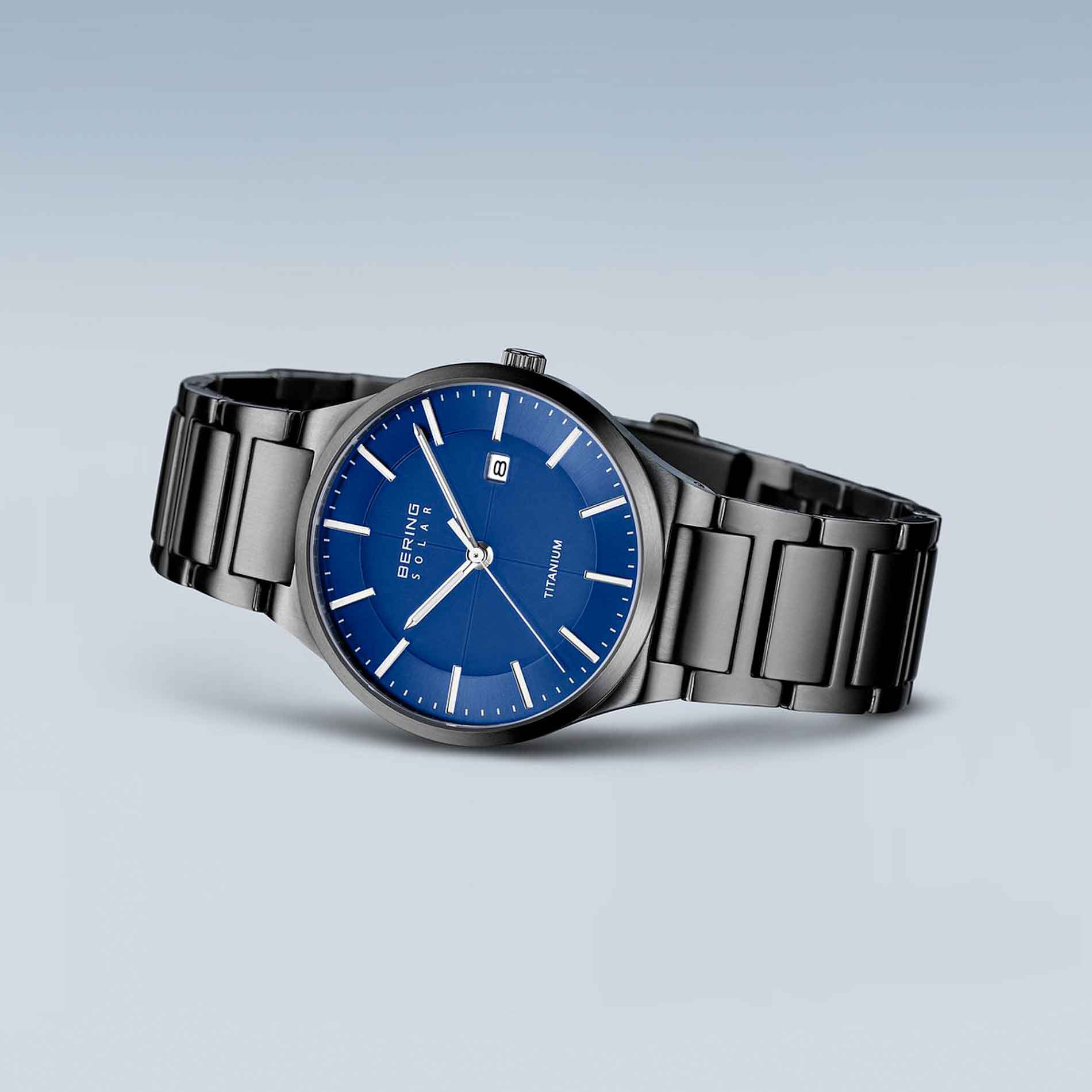 Skab et elegant statement med Bering Slim Solar ur. Med en børstet sort urkasse af titanium og en diameter på 39 mm udstråler dette ur en moderne æstetik og holdbarhed. Safirglasset sikrer en klar og ridsefast skærm. Den sorte titanium-lænke med foldespænde giver ikke kun en sikker pasform, men også en luksuriøs følelse omkring håndleddet. Den blå urskive tilføjer et unikt og levende element til urets udseende. Med en vandtæthed på 10 ATM er dette ur både smukt og praktisk til både hverdagsbrug og eventyr.