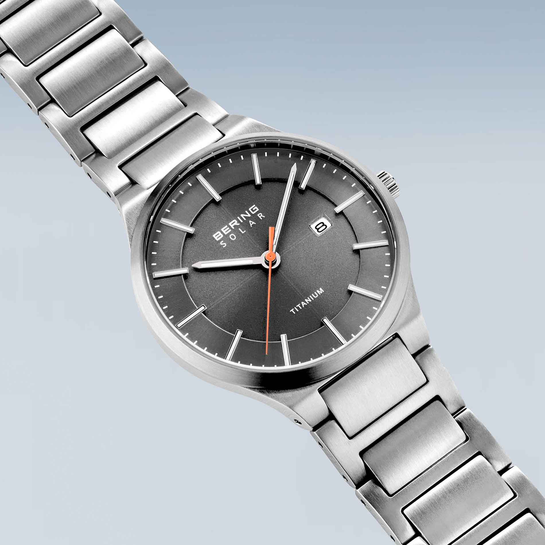 Bering Solar uret kombinerer det rå med sofistikeret stil. Med sin solcelleteknologi kan uret gå i 6 til 12 måneder, når det er fuldt opladet, mens den polerede og børstede urkasse med en diameter på 39 mm udstråler en subtil elegance. Safirglasset sikrer en holdbar og ridsefri skærm, der bevarer urets skønhed. Lænken i titanium giver ikke kun en sikker pasform, men også en perfekt matchende æstetik. Den grå urskive fuldender urets elegante udseende.