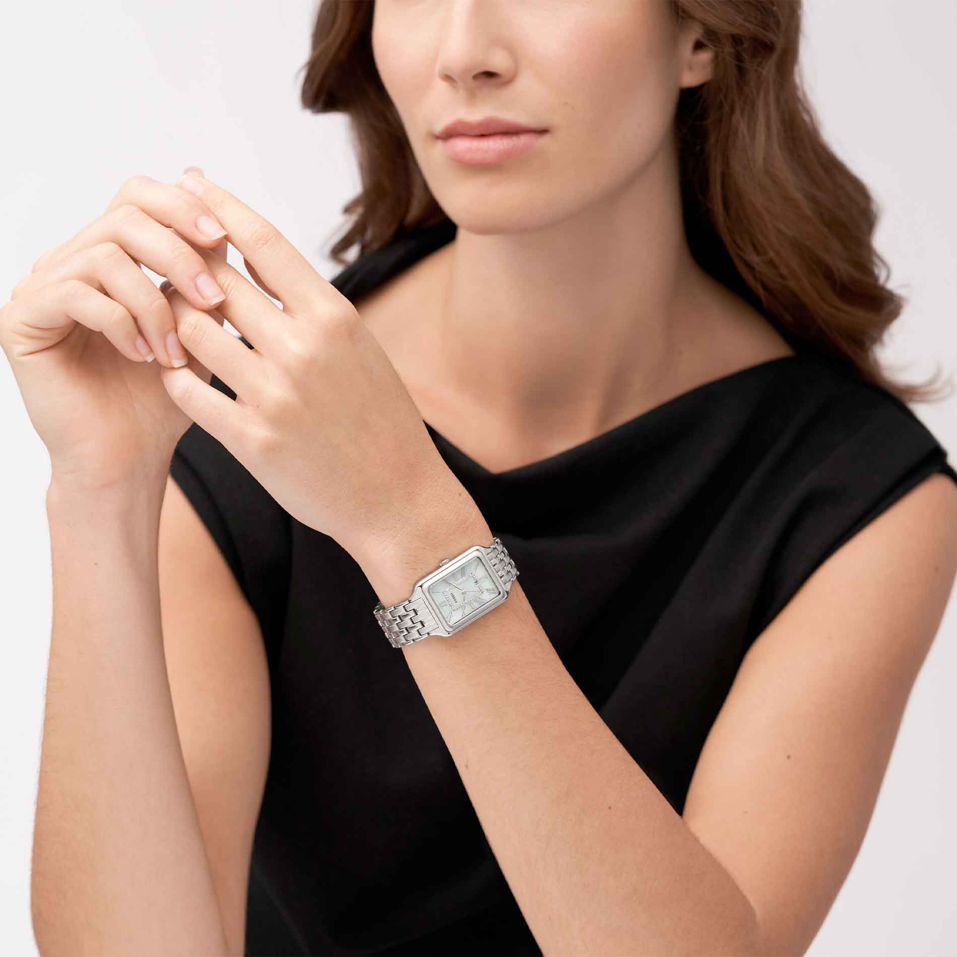 Giv din stil et løft med det elegante Fossil Raquel ur. Dette firkantede ur er fremstillet i rustfrit stål og har en klassisk og elegant perlemor urskive, der fanger lyset smukt. Perfekt til både hverdag og festlige lejligheder, Fossil Raquel kombinerer klassisk design med moderne raffinement.