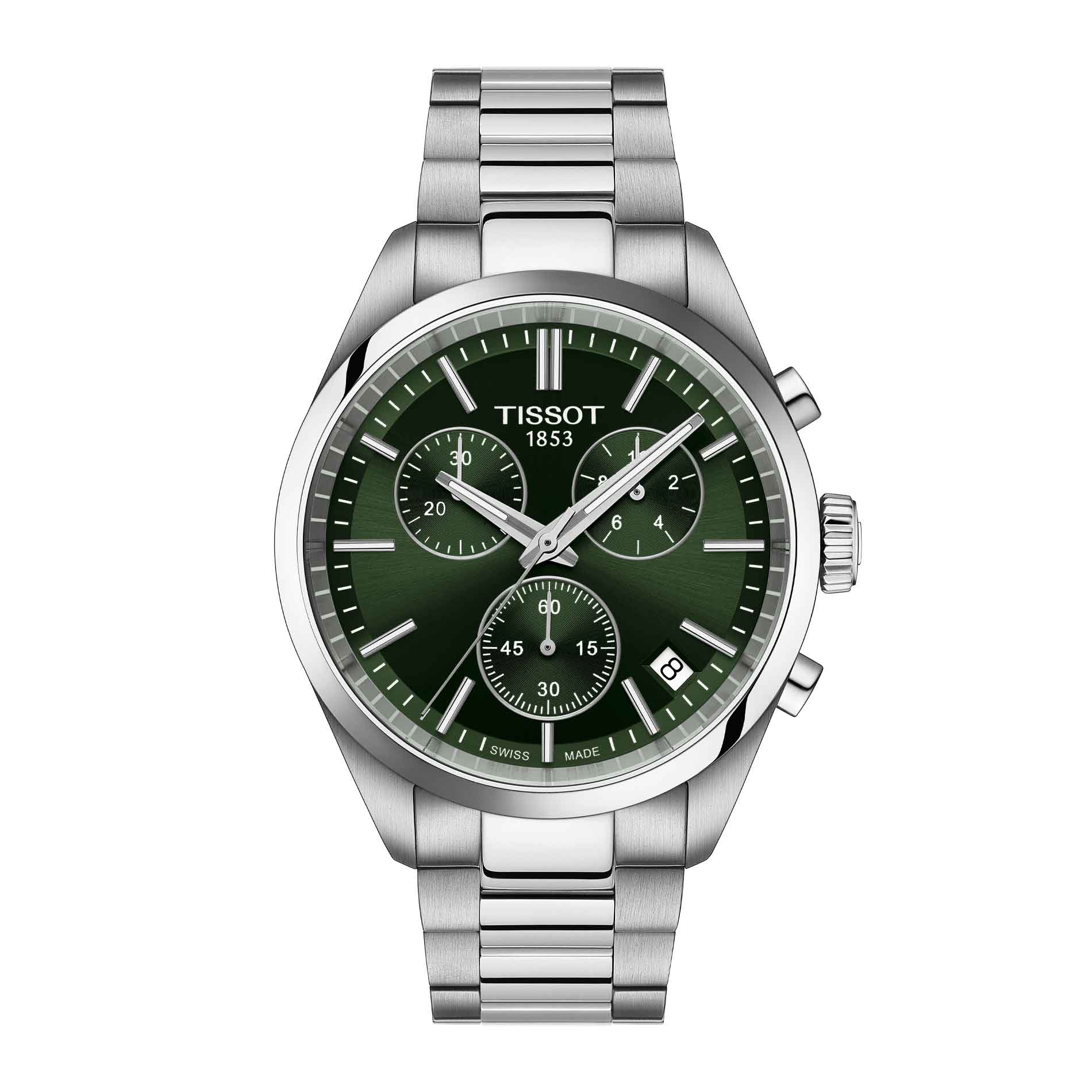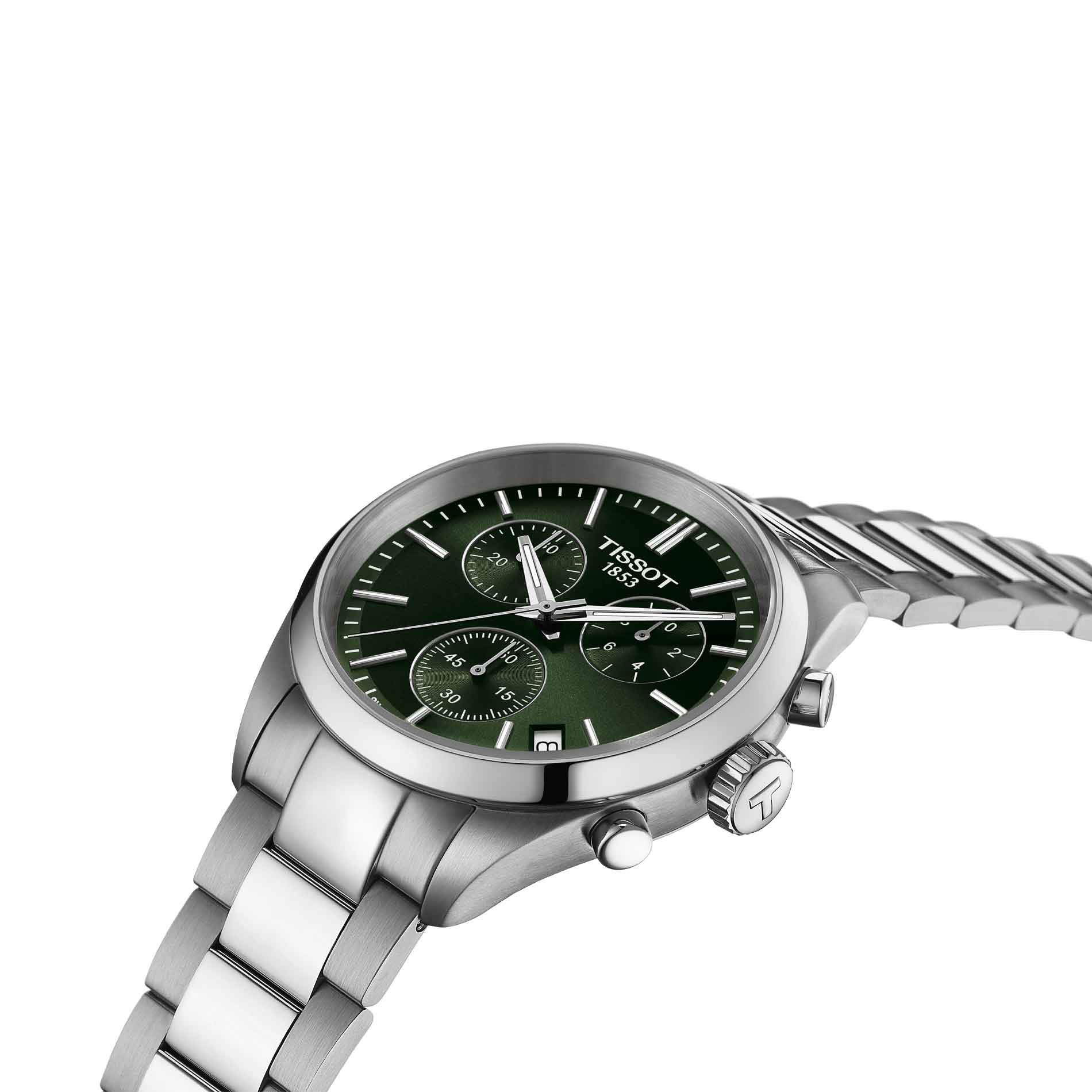 Denne version af Tissot PR 100 Chronograph uret præsenterer en smuk kombination af stål med en elegant grøn urskive. Dette Tissot ur er en kombination af skønhed og præcision, der er uovertruffen. Bestil det i dag og tilføj et strejf af schweizisk elegance til din garderobe.