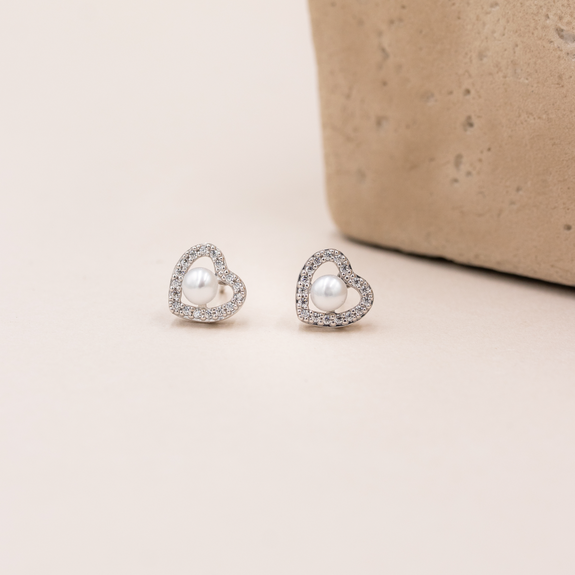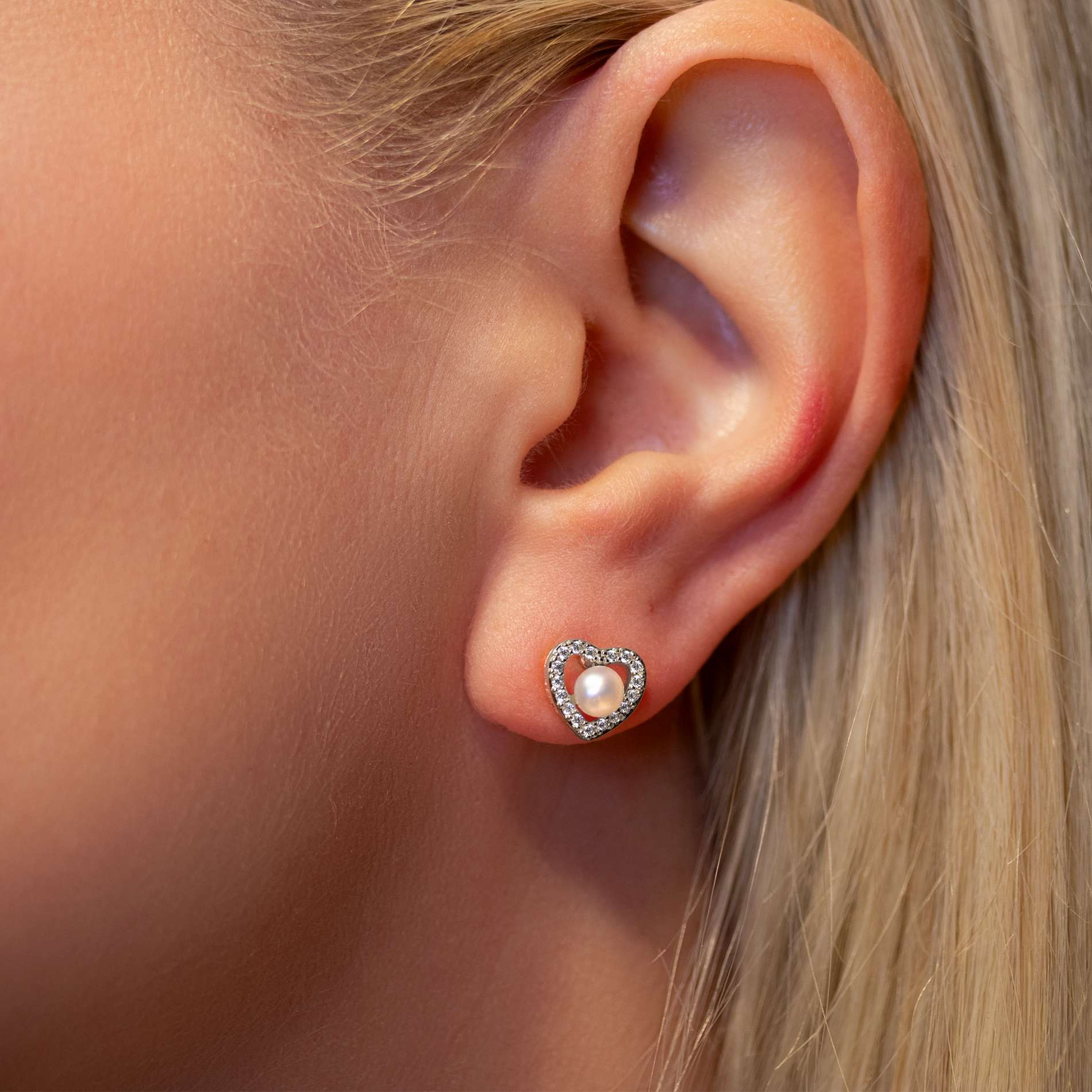Chester ørestikker er udført i sterling sølv og forener et blødt, feminint udtryk med klassisk elegance. Det åbne hjerte er indrammet af funklende zirkonia, som fremhæver den runde, hvide midtersten og skaber et harmonisk samspil mellem form og glans.