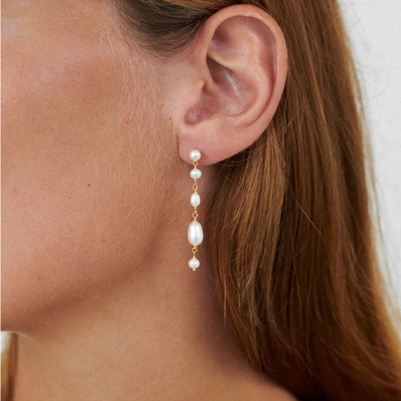 Dyk ned i en verden af mystik og skønhed med Pernille Corydons fortryllende White Dreams Earrings, designet af den talentfulde Pernille Corydon. Inspireret af havets skjulte skatte, præsenterer disse øreringe en betagende sammensætning af hvide perler i forskellige størrelser og former, der tilsammen skaber et unikt og elegant look.