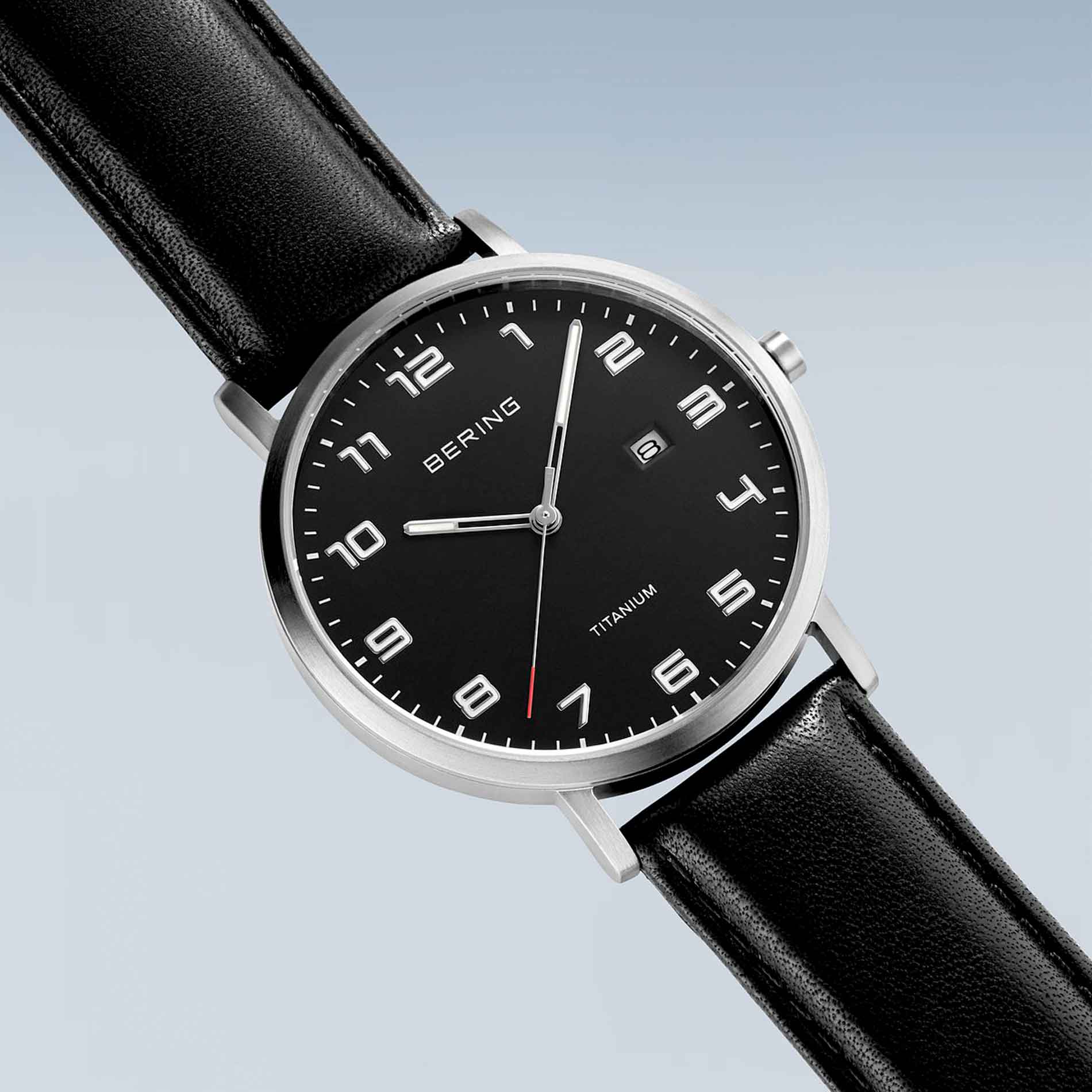 Få en perfekt balance mellem stil og holdbarhed med Bering Titanium ur. Dette ur præsenterer en imponerende urkasse lavet af børstet titanium med en diameter på 40 mm, der udstråler robusthed og elegance. Safirglasset sikrer en klar og holdbar skærm, der beskytter mod ridser og stød. Den sorte kalvelæderrem med spændelås tilbyder ikke kun en behagelig pasform, men også et klassisk udseende. Den sorte urskive fuldender urets stilfulde æstetik.