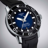 Dette Tissot herre dykkerur er skabt til at imponere med sin kombination af schweizisk præcision og imponerende funktioner, der gør det ideelt til dykning og aktivt livsstil. Uret er specielt designet til dykning og præsenterer en imponerende kombination af en sølv urkasse, sort gummirem samt en markant blå urskive. Det har også en bemærkelsesværdig vandbestandighed på 300 meter, hvilket gør det til et uundværligt redskab for seriøse dykkere.