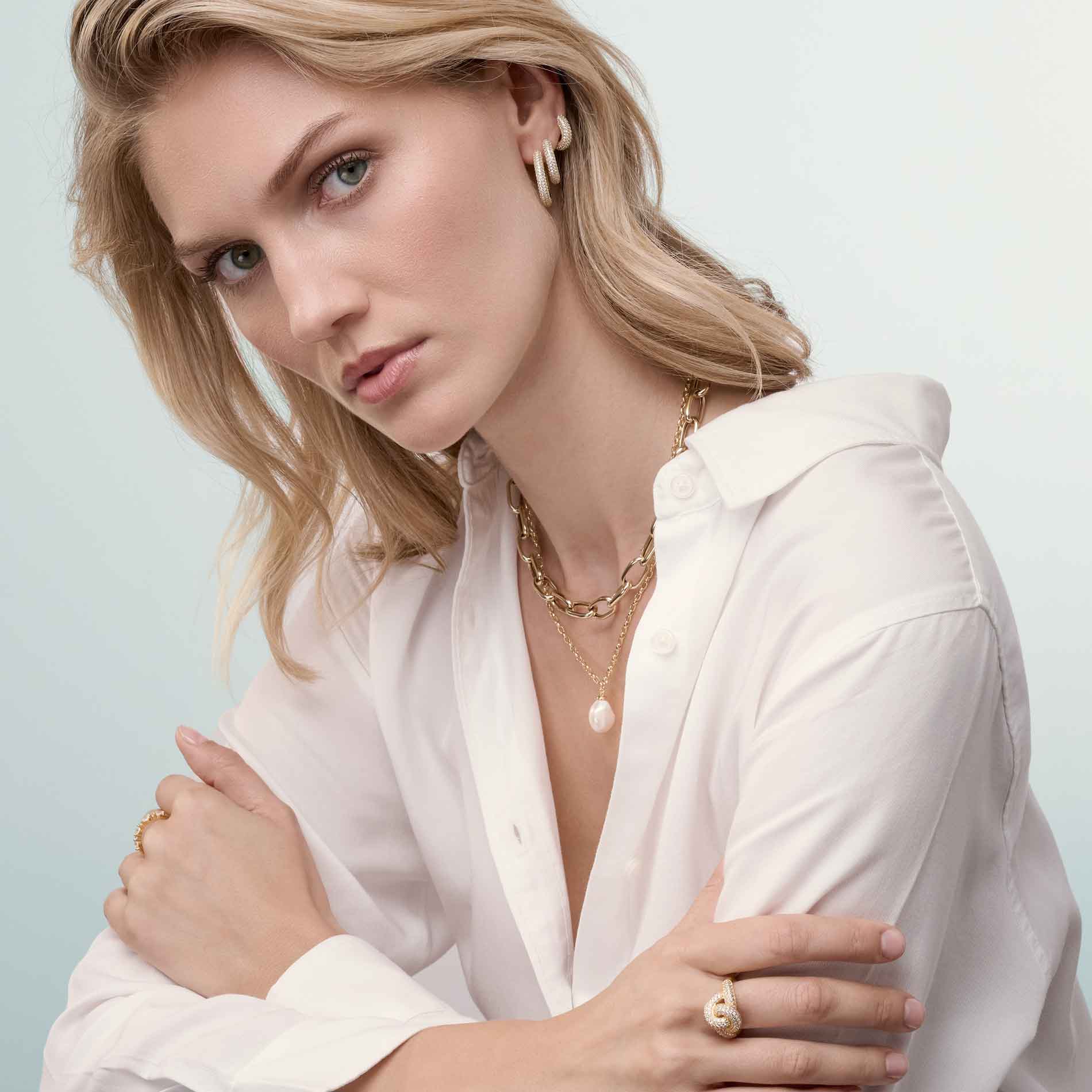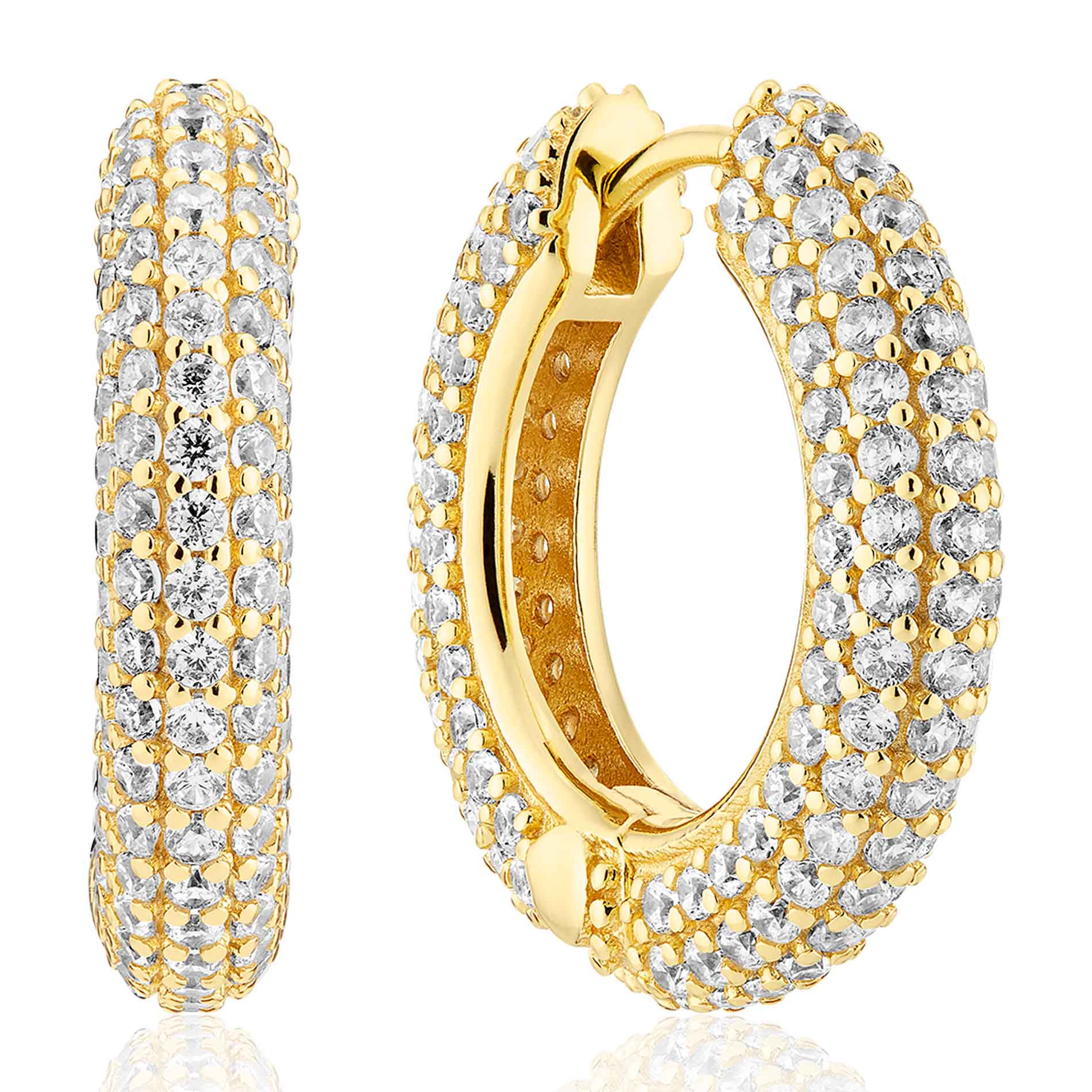 Sif Jakobs Carrara Medio creoler er et udtryk for moderne luksus og tidløs elegance. Disse chunky creoler er fremstillet af forgyldt sterling sølv og er smukt prydet med skinnende hvide, facetslebne zirkonia sten, der tilføjer en subtil glans. Med deres generøse størrelse og sofistikerede design er disse øreringe det perfekte valg til at tilføre et strejf af glamour til enhver lejlighed.