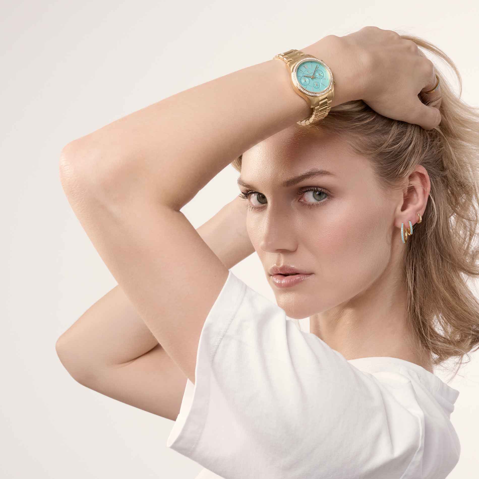 Sif Jakobs Ellera Grande creoler i forgyldt med turkise zirkonia