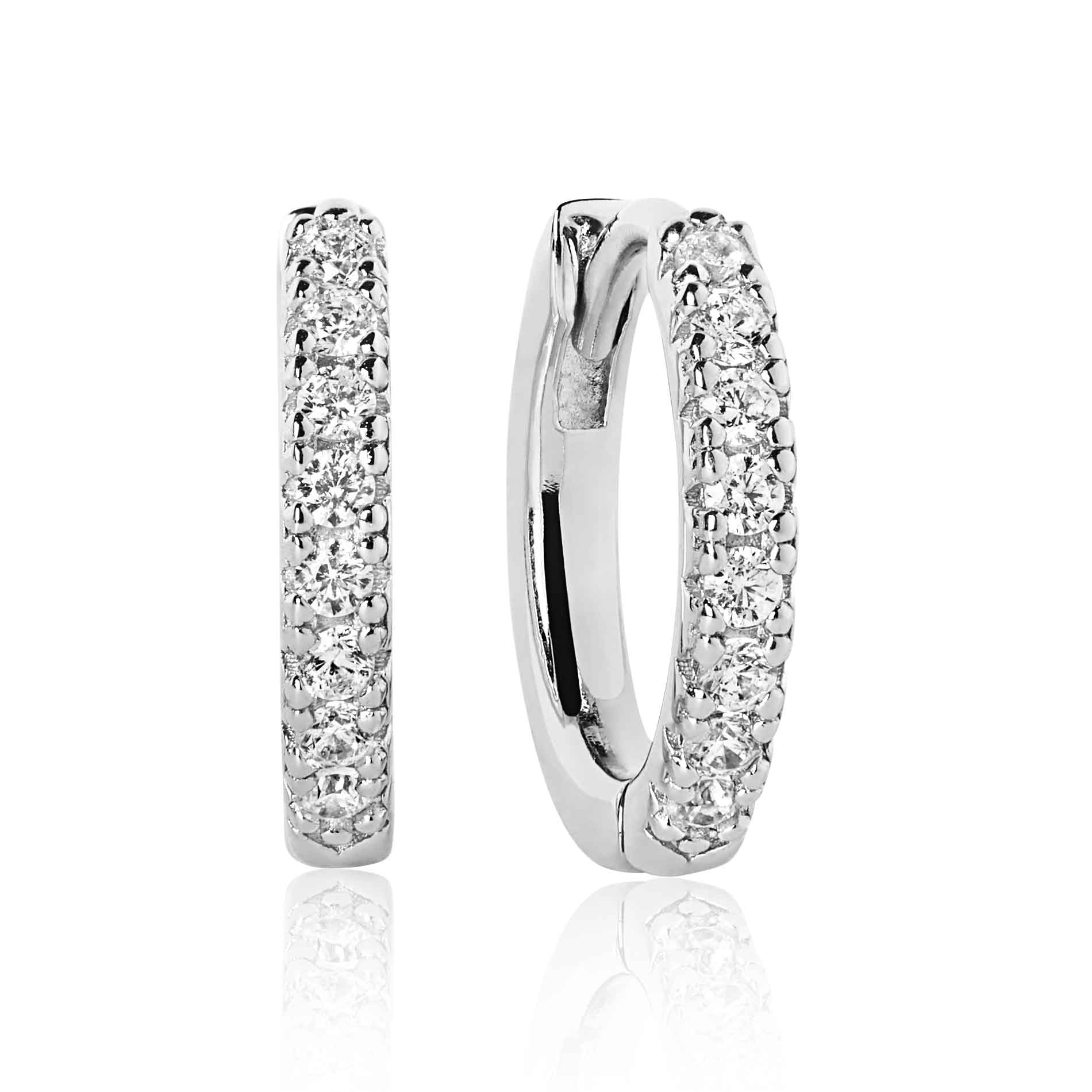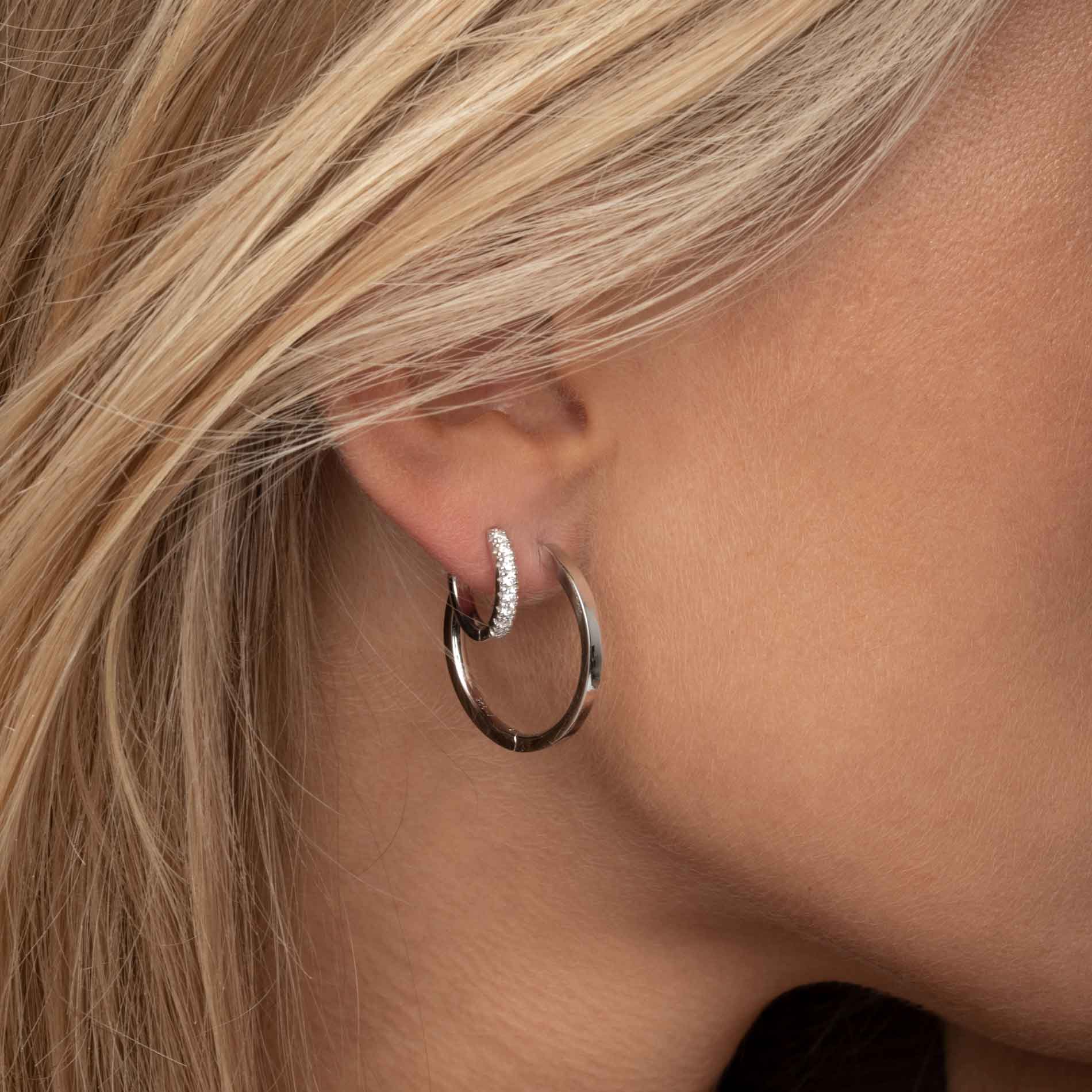 Disse øreringe i 925 sterlingsølv udstråler en strålende skønhed og elegance. Med deres blankpolerede overflade og glitrende facetslebne hvide zirkonia sten, er disse øreringe det perfekte accessory til enhver lejlighed. De har en imponerende diameter på 14 mm, der tilføjer et strejf af luksus til dit look. Disse øreringe er en tidløs klassiker, der vil forblive en favorit i din smykkesamling.