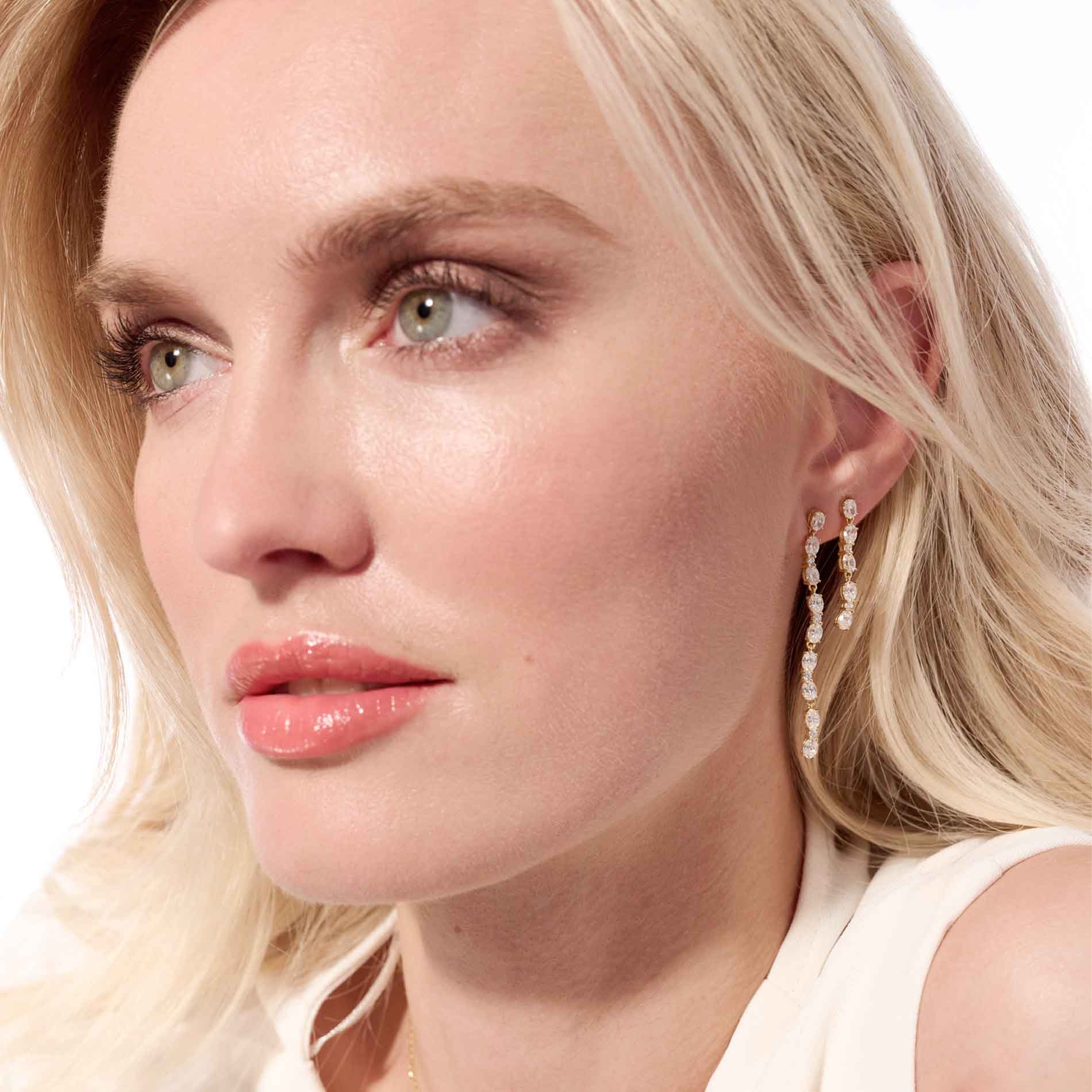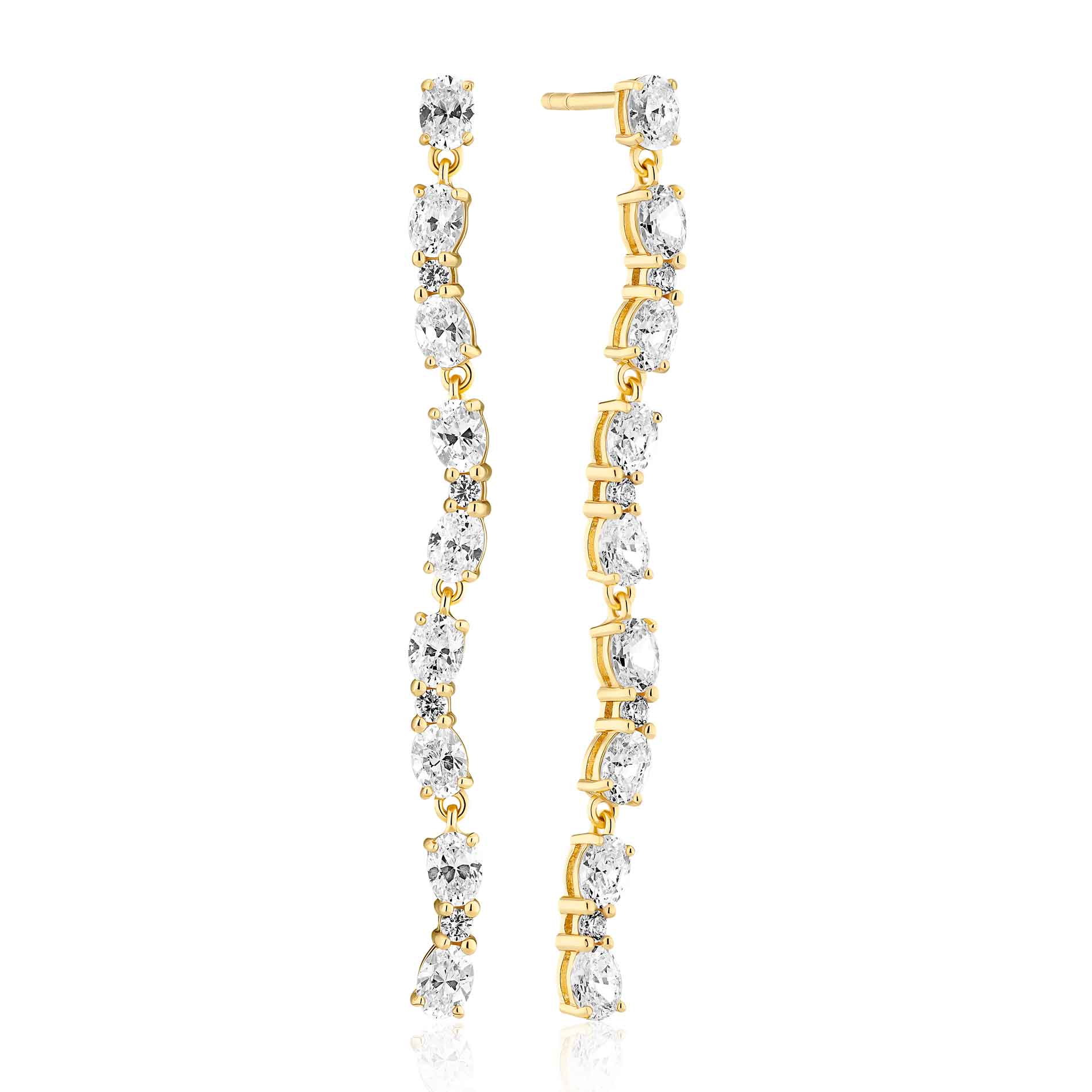 Sif Jakobs Ellera Ovale Tredici-øreringe er lange og elegante, designet til at skabe et sofistikeret udtryk. Fremstillet i forgyldt sterlingsølv med en smuk poleret overflade, er disse øreringe prydet med håndsatte, facetslebne hvide zirkonia på række, som skinner ved hver bevægelse. Det slanke og luksuriøse design gør dem perfekte til både daglig brug og festlige lejligheder, hvor du ønsker at tilføre dit look et strejf af elegance og glamour.