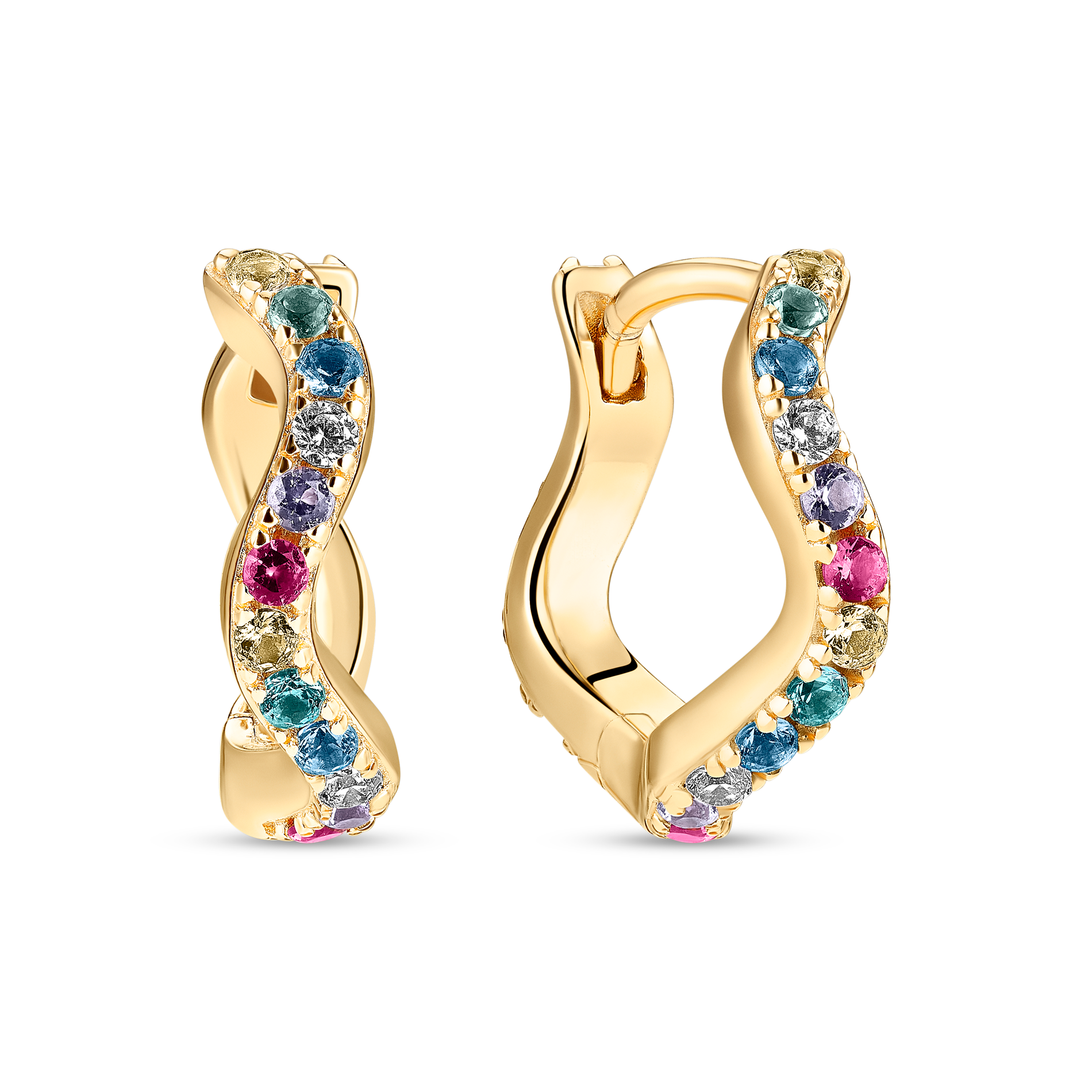 Sif Jakobs Ellera Waves Medio creoler i forgyldt med multifarvet sten