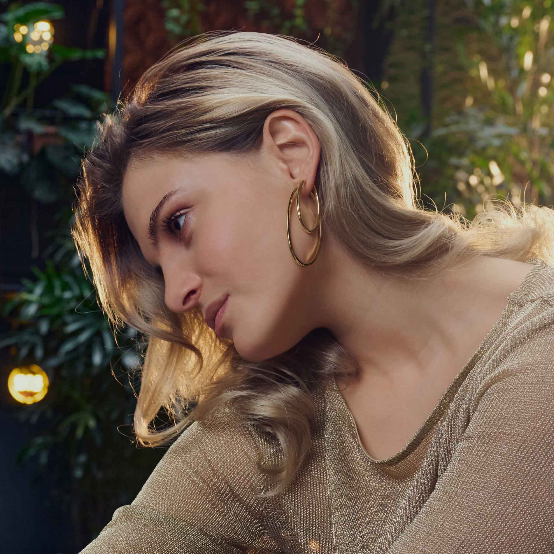 Forgyld din stil med Sif Jakobs' Ellisse Pianura Medio creoler. Disse forgyldte sølv creoler er en hyldest til enkelhed og elegance. Den glatte overflade og det tidløse design gør dem til det perfekte accessory, der kan bæres til enhver lejlighed. Skab et strålende statement med disse smukke creoler, der tilføjer et strejf af luksus til din hverdag.