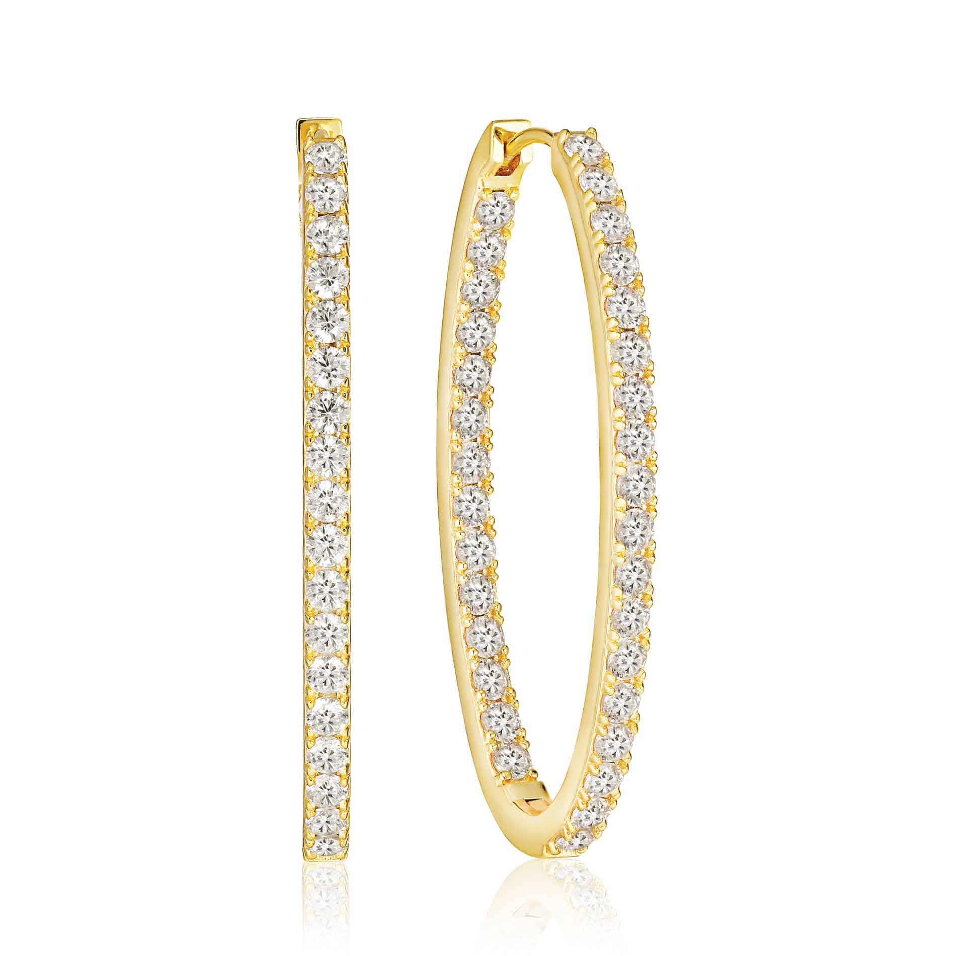 Disse forgyldte øreringe er en festlig og strålende tilføjelse til din smykkesamling. De er udført i 18 karat forgyldt 925 sterlingsølv med en blankpoleret overflade, der skinner smukt i lyset. Øreringene er dekoreret med en række facetslebne, hvide zirkonia, der fanger øjet og tilføjer et strejf af glans til dit look. Med en længde på 40 mm og en bredde på 2,5 mm er de både elegante og iøjnefaldende, perfekte til enhver lejlighed.