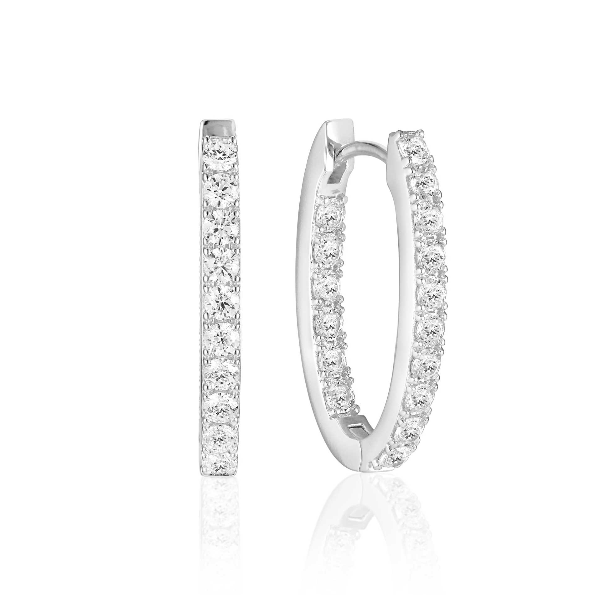 Disse øreringe er en festlig og strålende tilføjelse til din smykkesamling. De er udført i rhodineret 925 sterling sølv med en blankpoleret overflade, der skinner smukt i lyset. Øreringene er dekoreret med en række facetslebne, hvide zirkonia, der fanger øjet og tilføjer et strejf af glans til dit look. Med en længde på 23 mm og en bredde på 2,5 mm er de både elegante og iøjnefaldende, perfekte til enhver lejlighed.