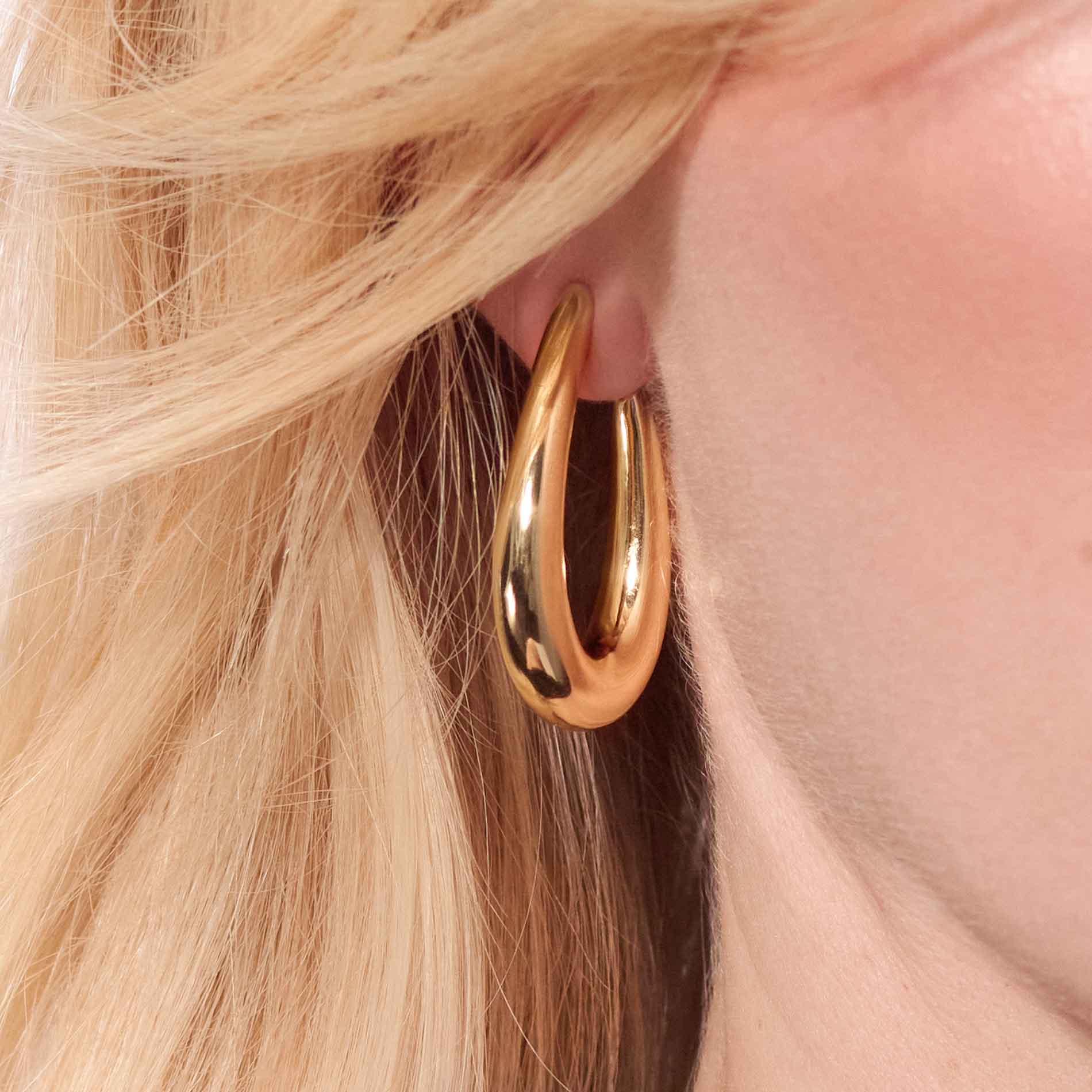 Sif Jakobs Goccia Pianura Medio øreringe er chunky creoler, der udstråler elegance og moderne stil. Fremstillet i forgyldt sterlingsølv med en smukt poleret overflade, fanger disse creoler lyset på en sofistikeret måde. Deres chunky design gør dem til et markant smykke, som kan bæres alene for et minimalistisk look eller kombineres med andre smykker for et dristigere udtryk. Perfekte til både hverdagsbrug og særlige anledninger.