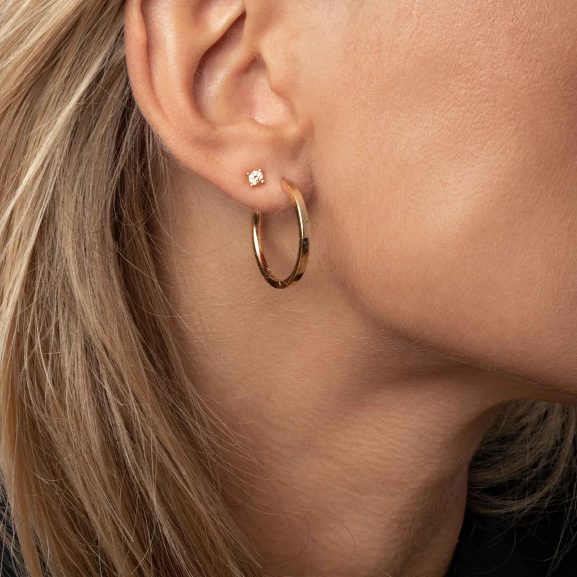 Skab elegance og glans med disse fortryllende øreringe i 18 karat forgyldt 925 sterling sølv. Øreringene har en smuk og blankpoleret overflade, der fremhæver deres luksuriøse udseende. De er dekoreret med 3 mm facetslebne hvide zirkonia, der tilføjer et glansfuldt touch til det gyldne design. Disse øreringe er den perfekte kombination af klassisk og moderne stil.
