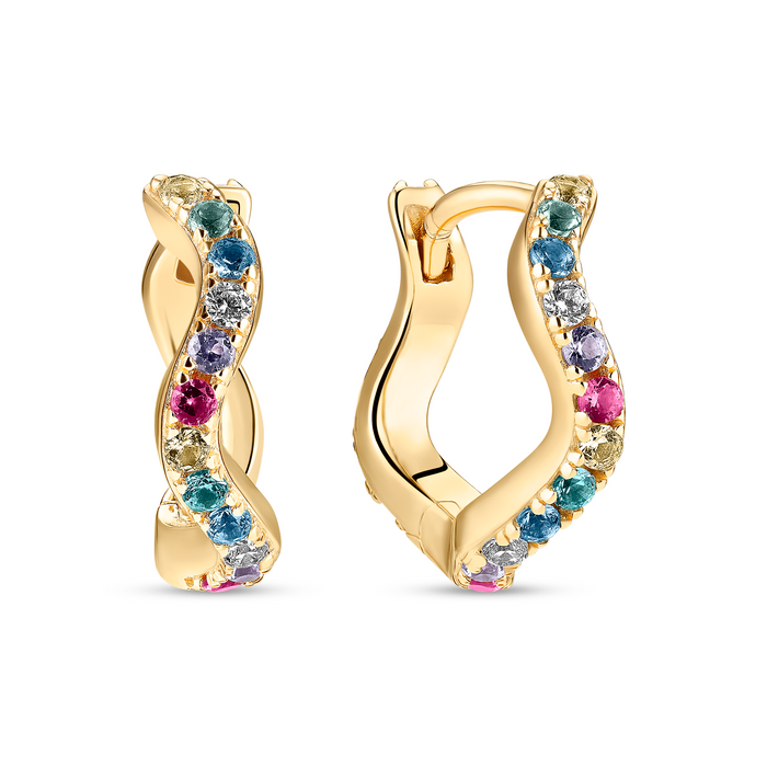 Sif Jakobs Ellera Waves Medio creoler i forgyldt med multifarvet sten