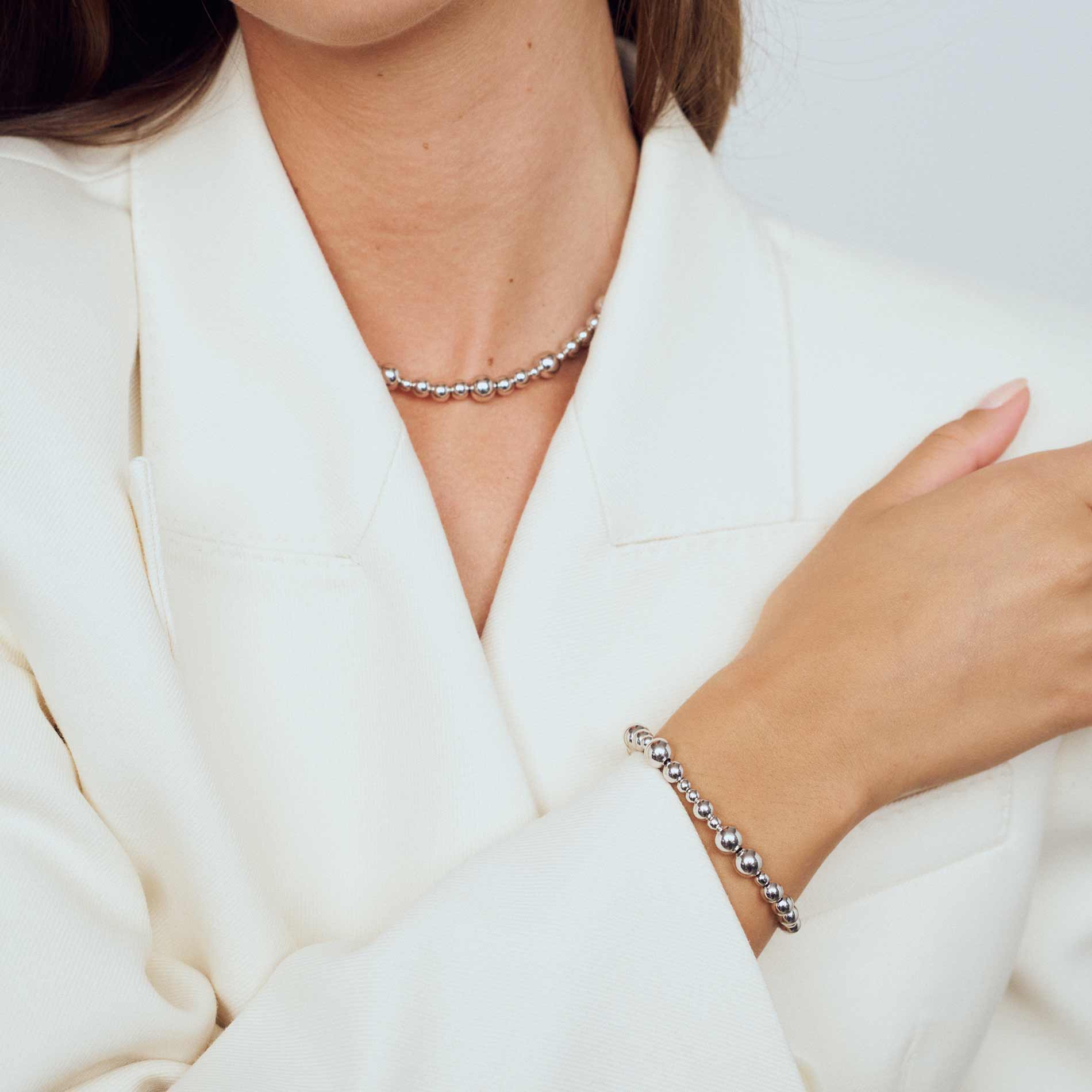 Sif Jakobs Bormio Grande armbånd i sterlingsølv udstråler sofistikeret enkelthed og moderne luksus. Det elegante, brede design fremhæver sølvets spejlblanke glans og giver et eksklusivt touch til ethvert outfit. Armbåndet har en justerbar længde for perfekt pasform og kan bæres alene for et rent, stilrent udtryk – eller kombineres med andre smykker for et personligt look med kant.